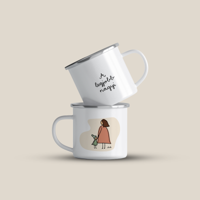 Cană emailată de calitate cu o capacitate de 360 ml. Grafica este unică si desenată manual.