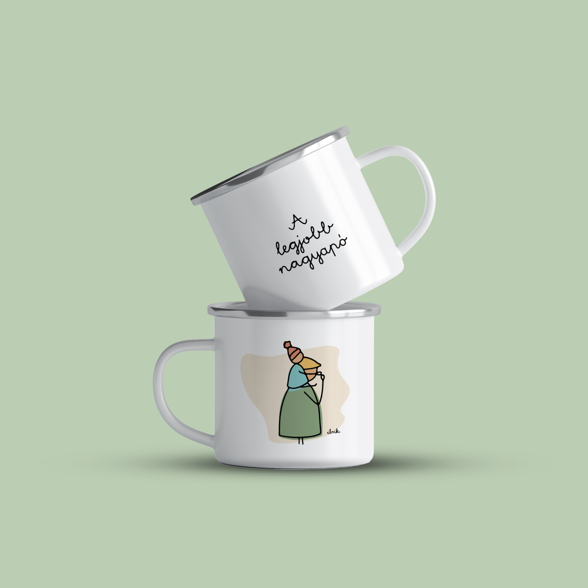 Cană emailată de calitate cu o capacitate de 360 ml. Grafica este unică si desenată manual.