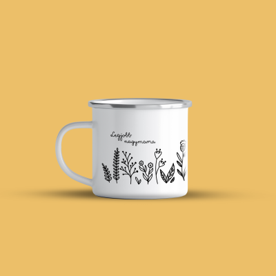 Cană emailată Legjobb nagyi – virágok BW, alb, ibrik, 360 ml