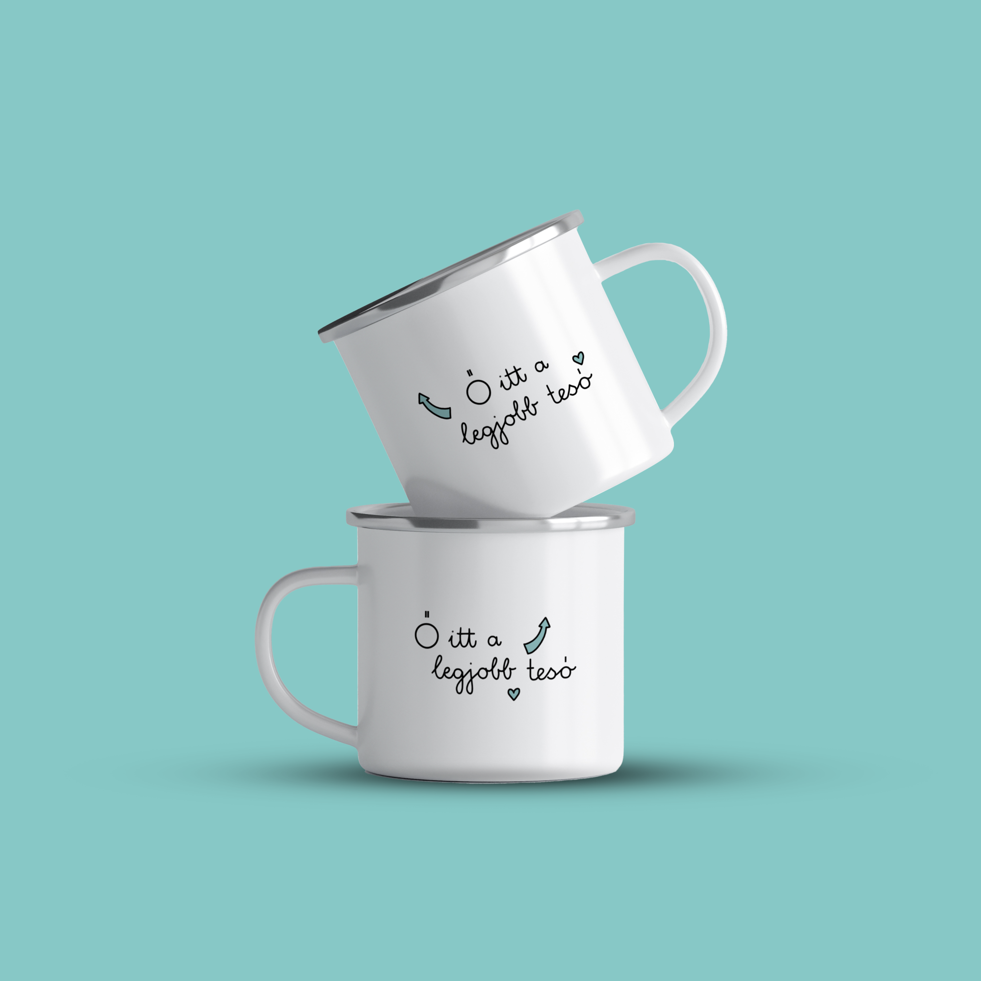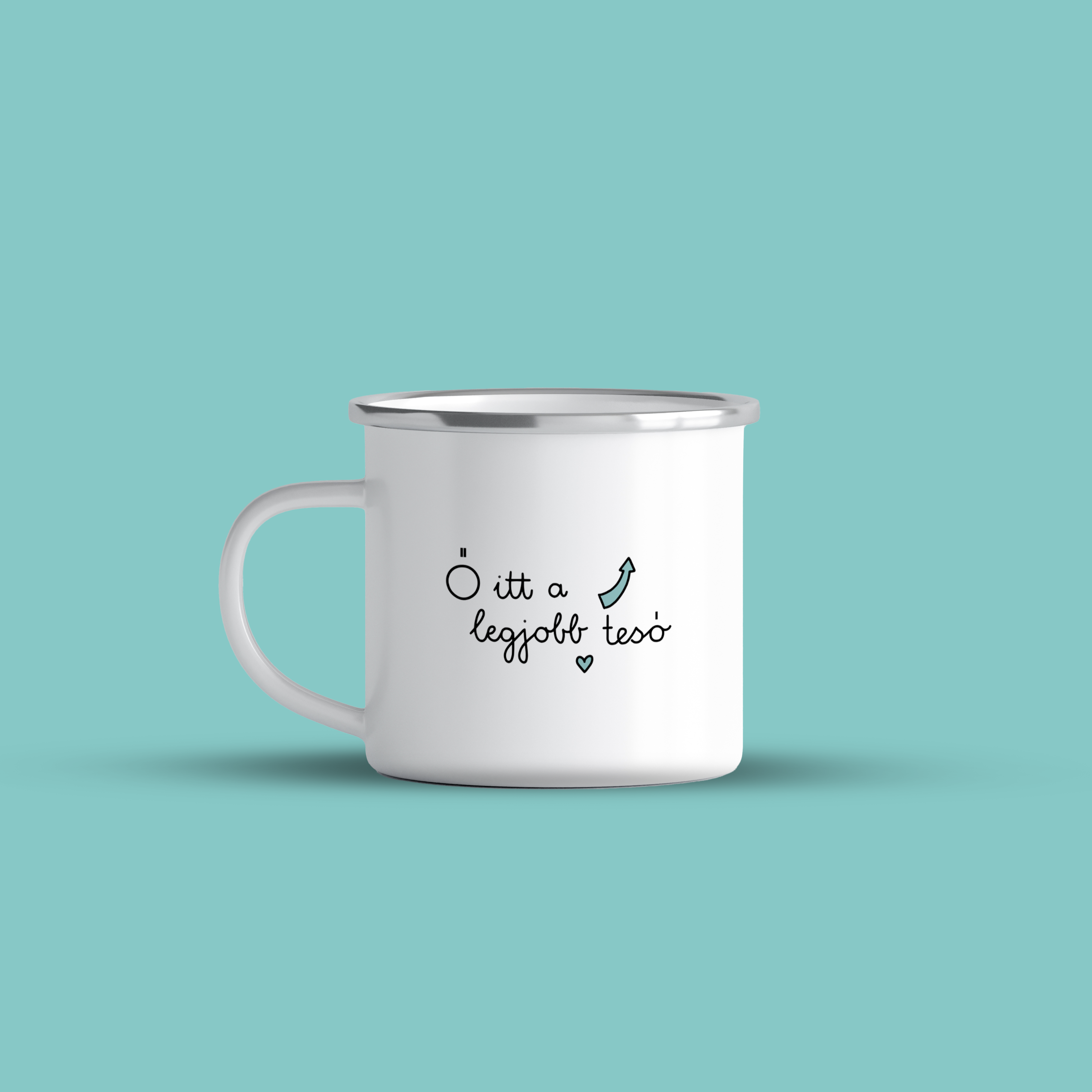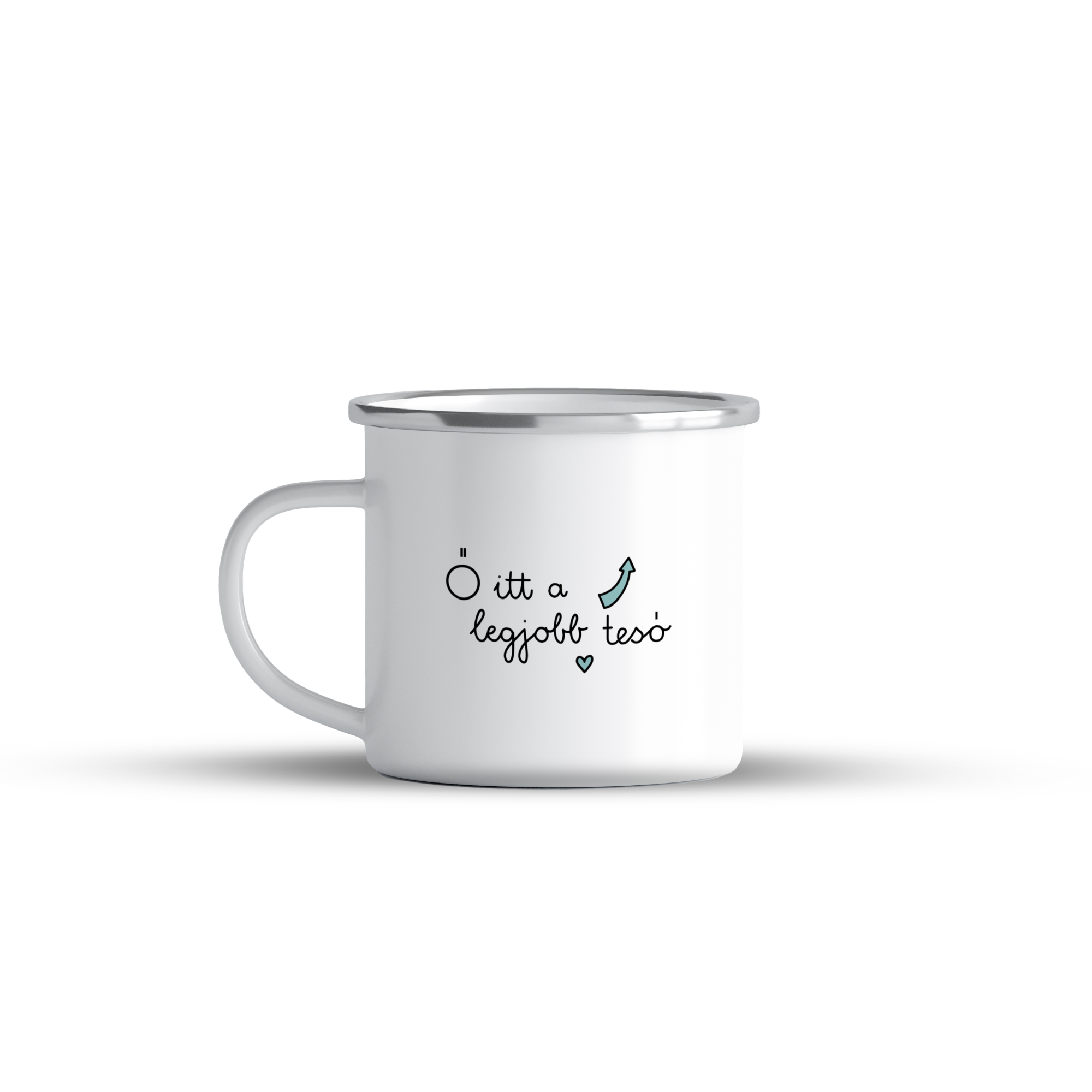 Cană emailată Legjobb tesó – kék, alb, ibrik, 360 ml
