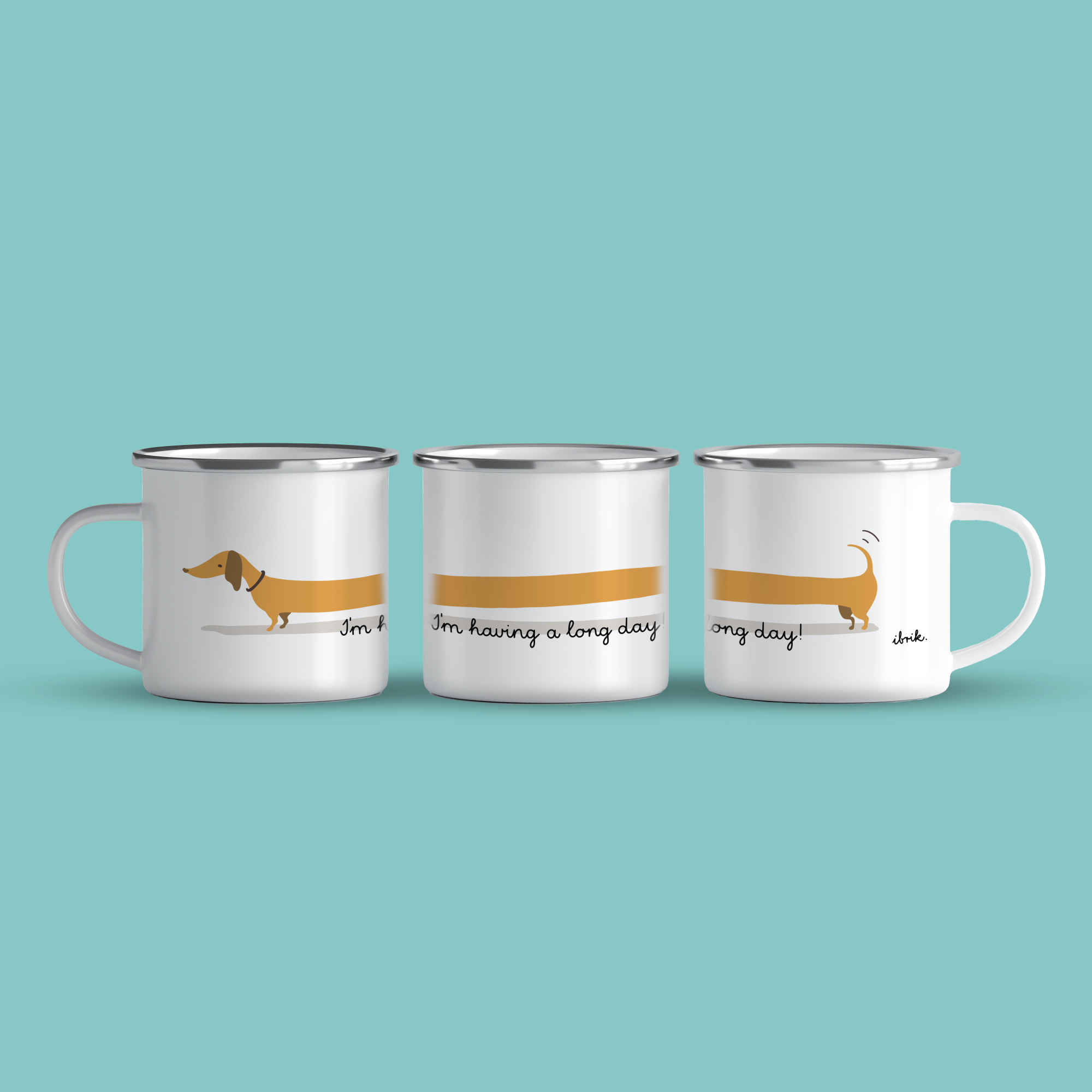 Cană emailată Looong day dachshund, alb, ibrik, 360 ml