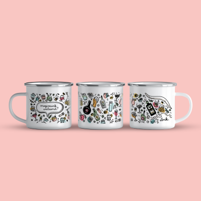 Cană emailată de calitate cu o capacitate de 360 ml. Grafica este unică si desenată manual.