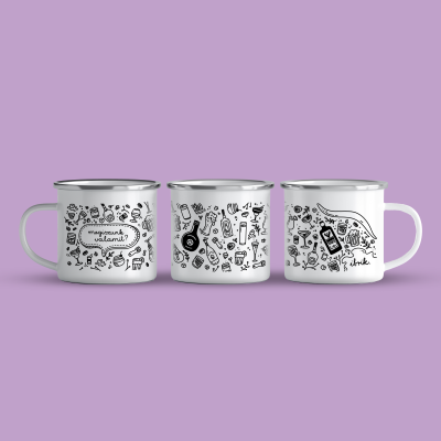 Cană emailată de calitate cu o capacitate de 360 ml. Grafica este unică si desenată manual.