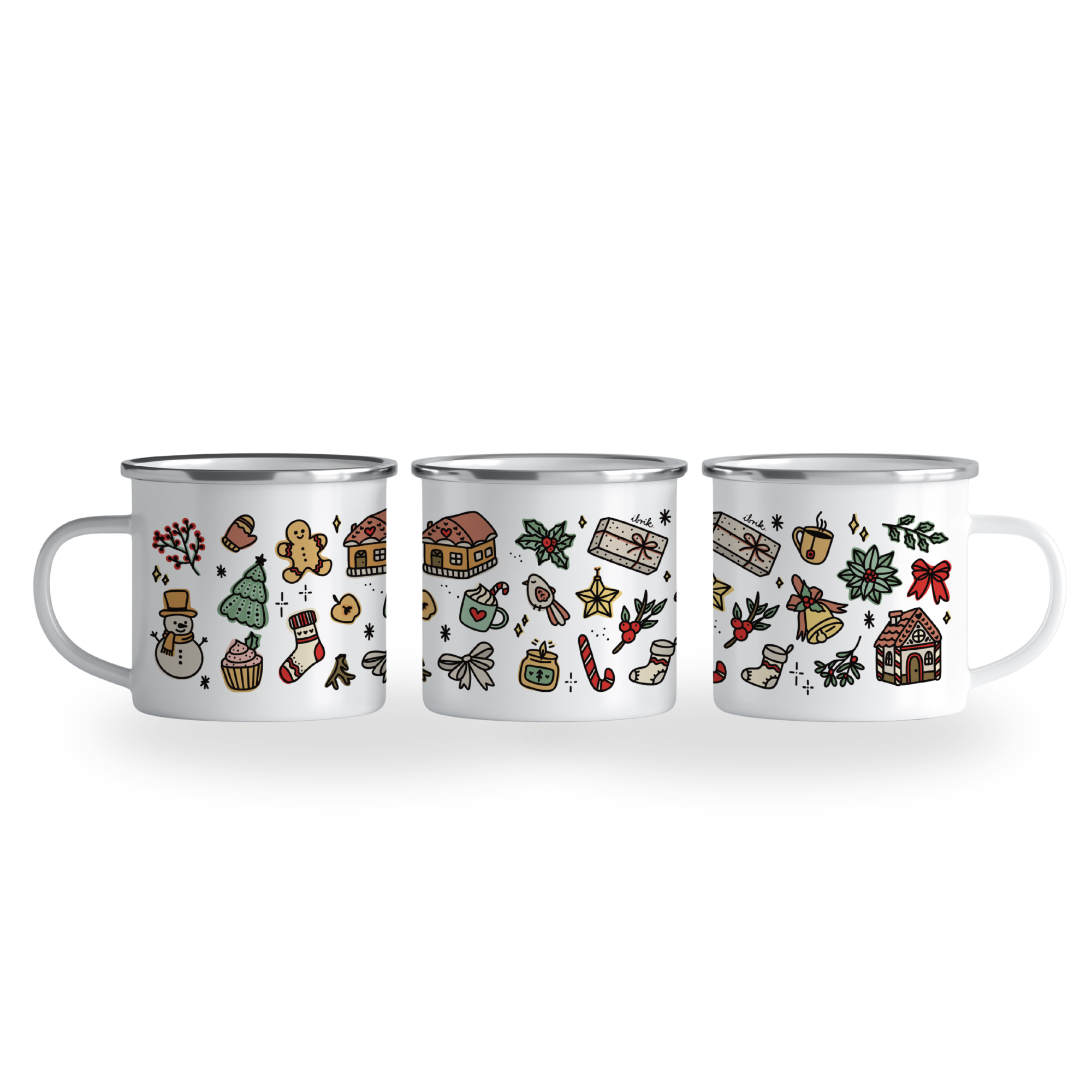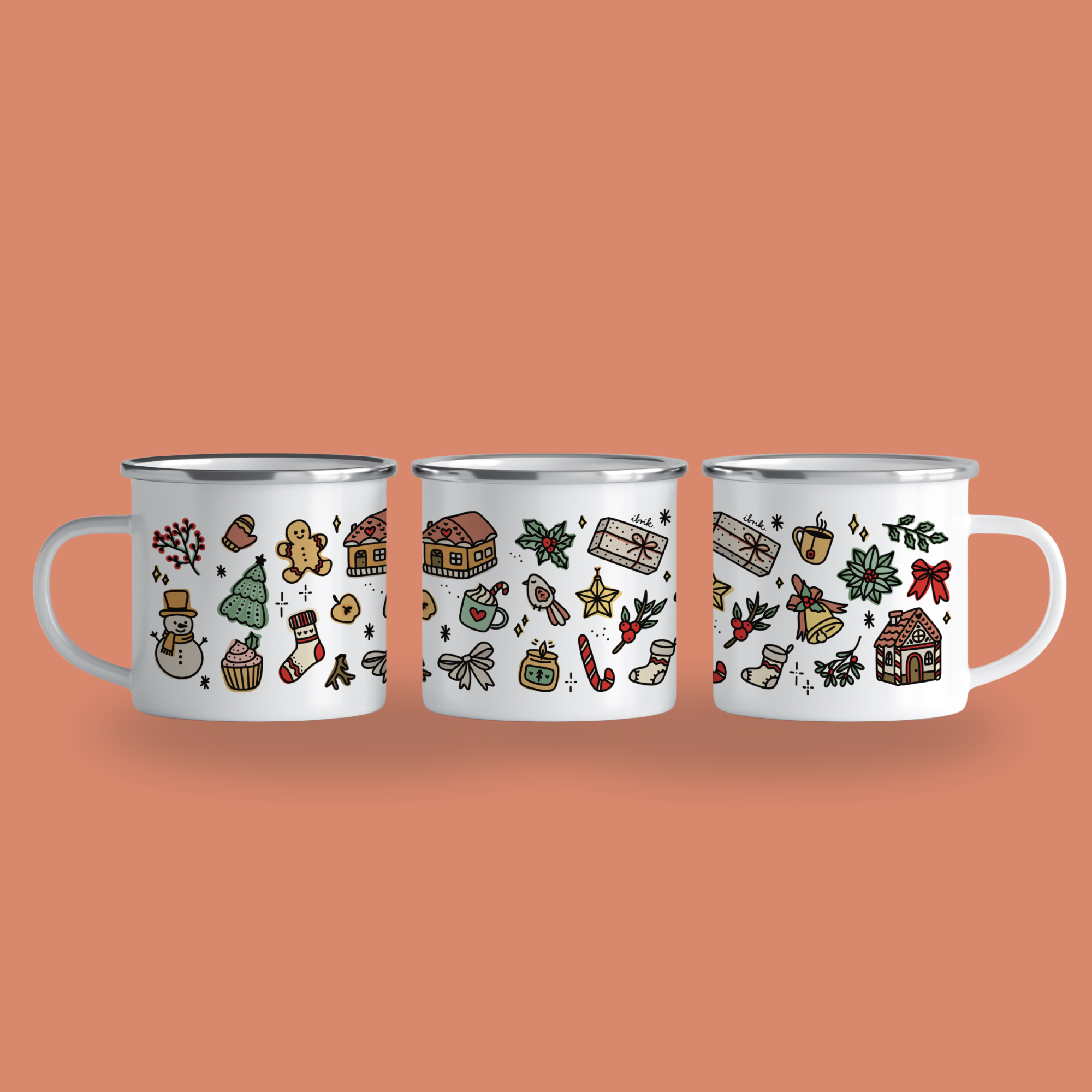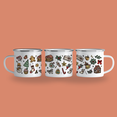 Cană emailată de calitate cu o capacitate de 360 ml. Grafica este unică si desenată manual.