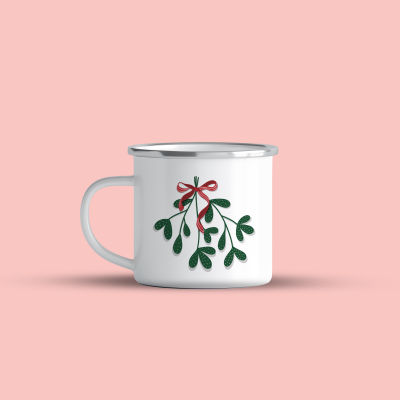 Cană emailata Mistletoe, alb, ibrik, 360 ml