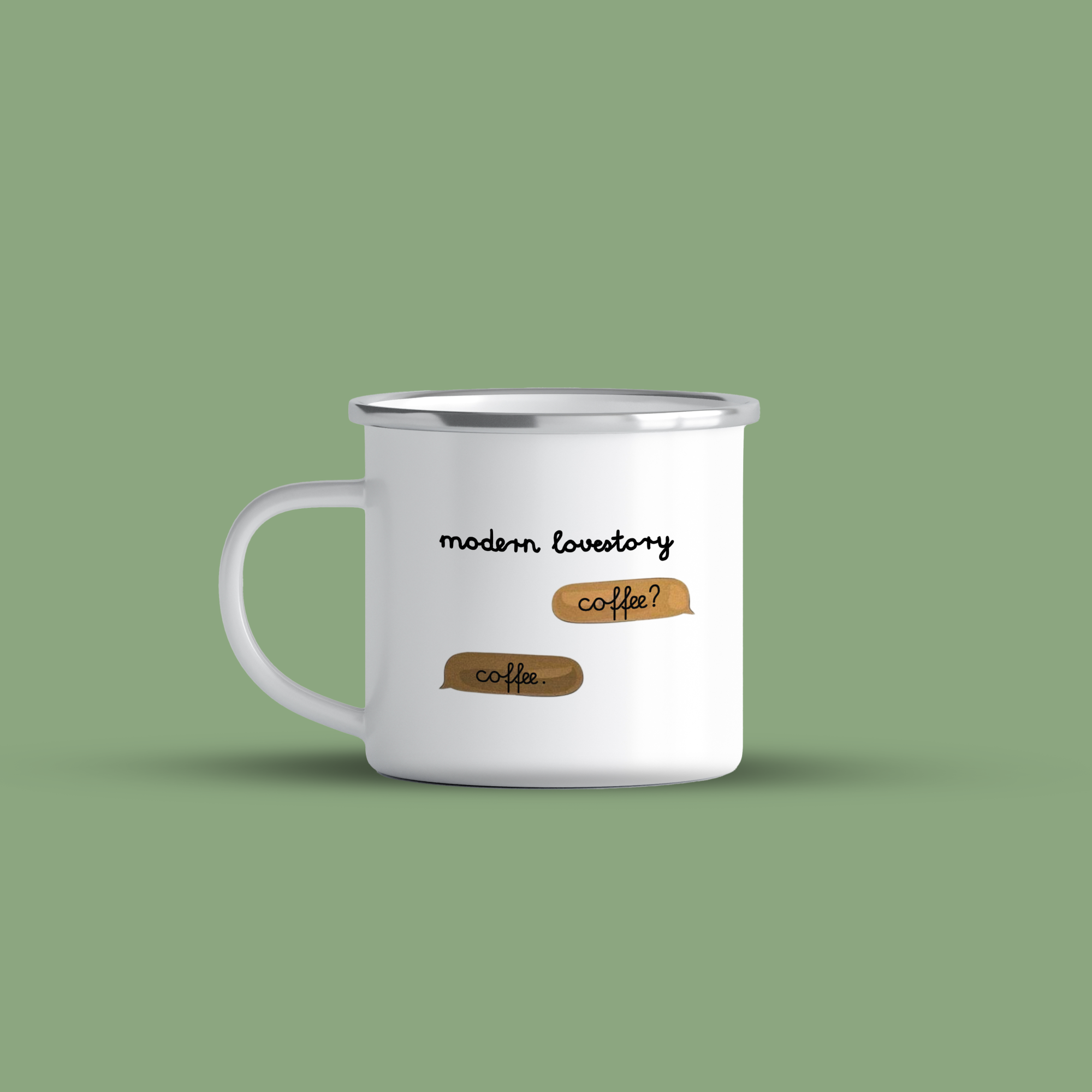 Cană emailată „Modern lovestory”, alb, ibrik, 360 ml