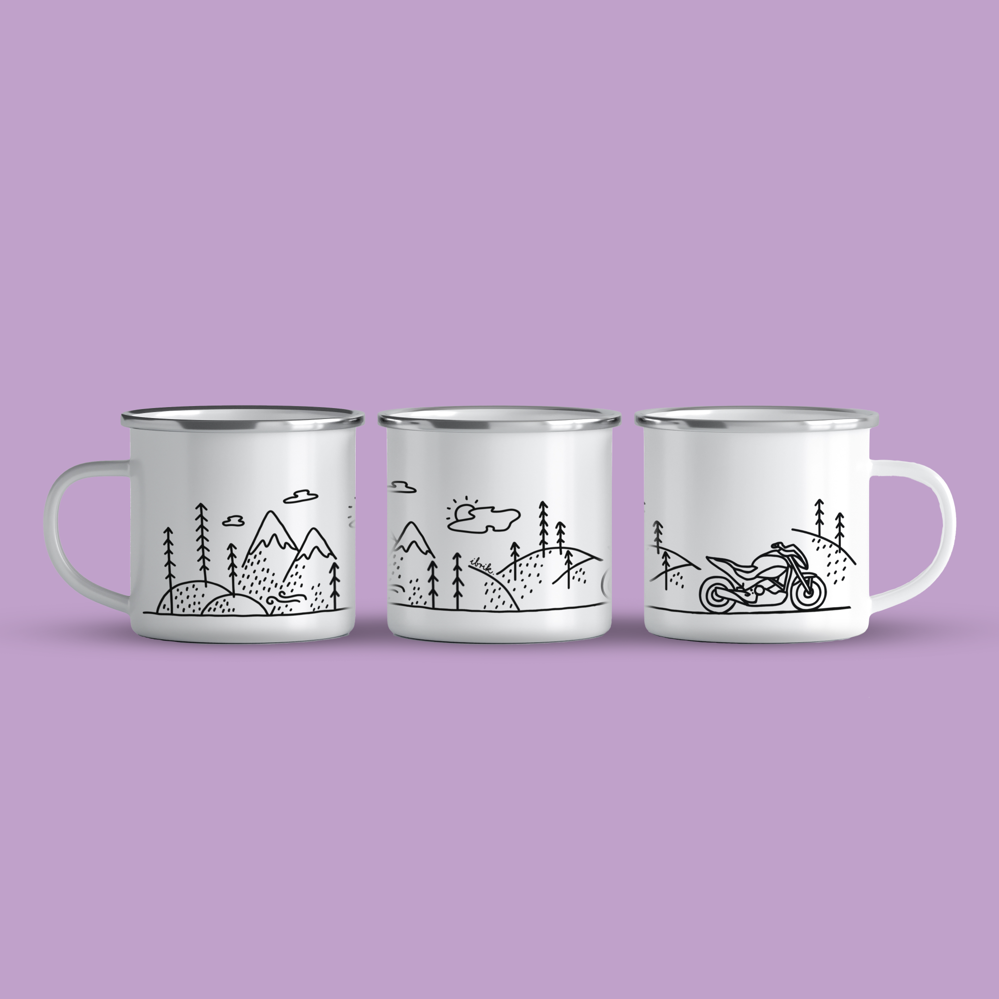 Cană emailată de calitate cu o capacitate de 360 ml. Grafica este unică si desenată manual.