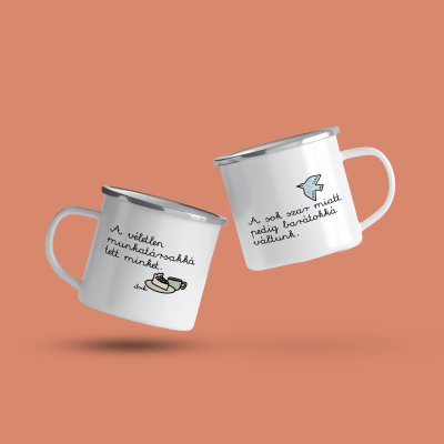 Cană emailată Munkatársak, barátok, alb, ibrik, 360 ml