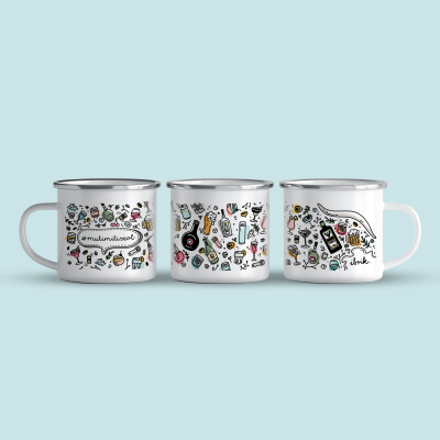 Cană emailată de calitate cu o capacitate de 360 ml. Grafica este unică si desenată manual.