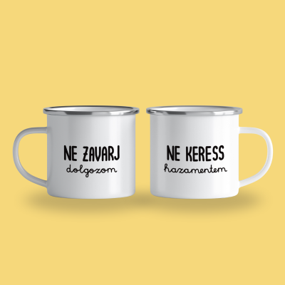 Cană emailată „Ne zavarj, ne keress”, alb, ibrik, 360 ml