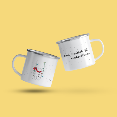 Cană emailata „Nem basztok fel”, alb, ibrik, 360 ml