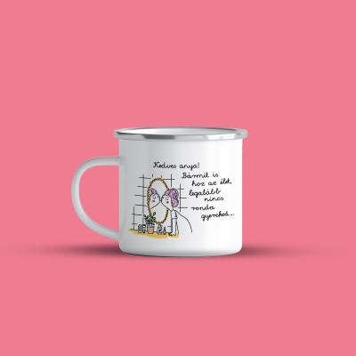 Cană emailată „Nincs ronda gyereked”, alb, ibrik, 360 ml