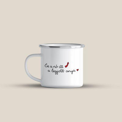 Cană emailată „Ő itt a legjobb anya”, alb, ibrik, 360 ml