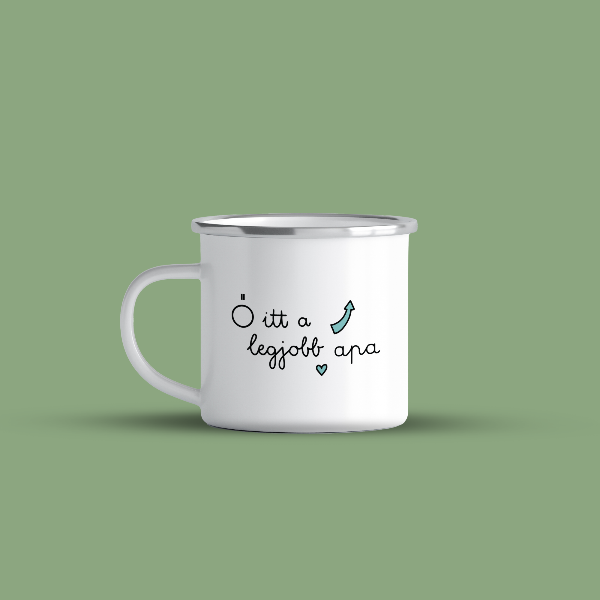 Cană emailată „Ő itt a legjobb apa”, alb, ibrik, 360 ml
