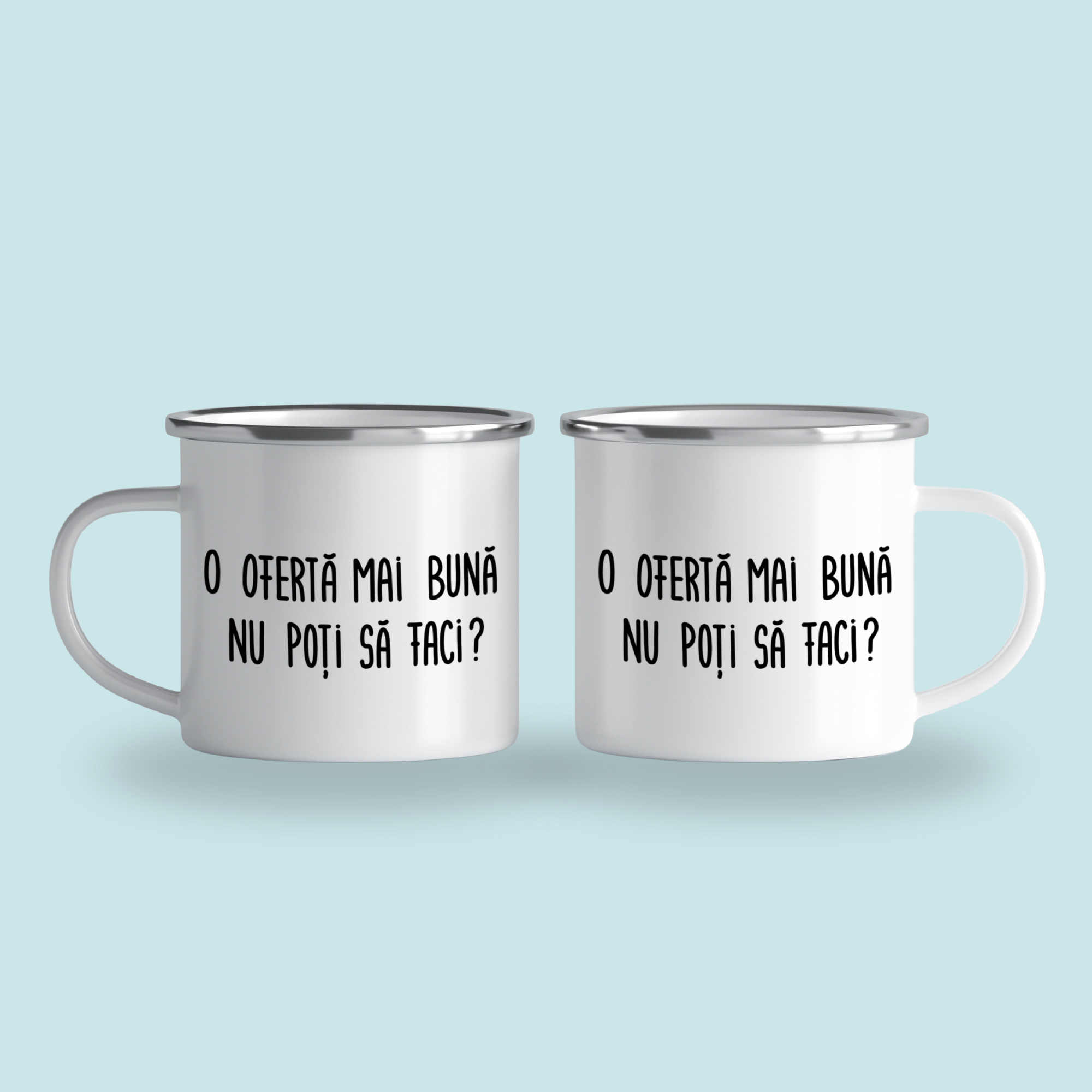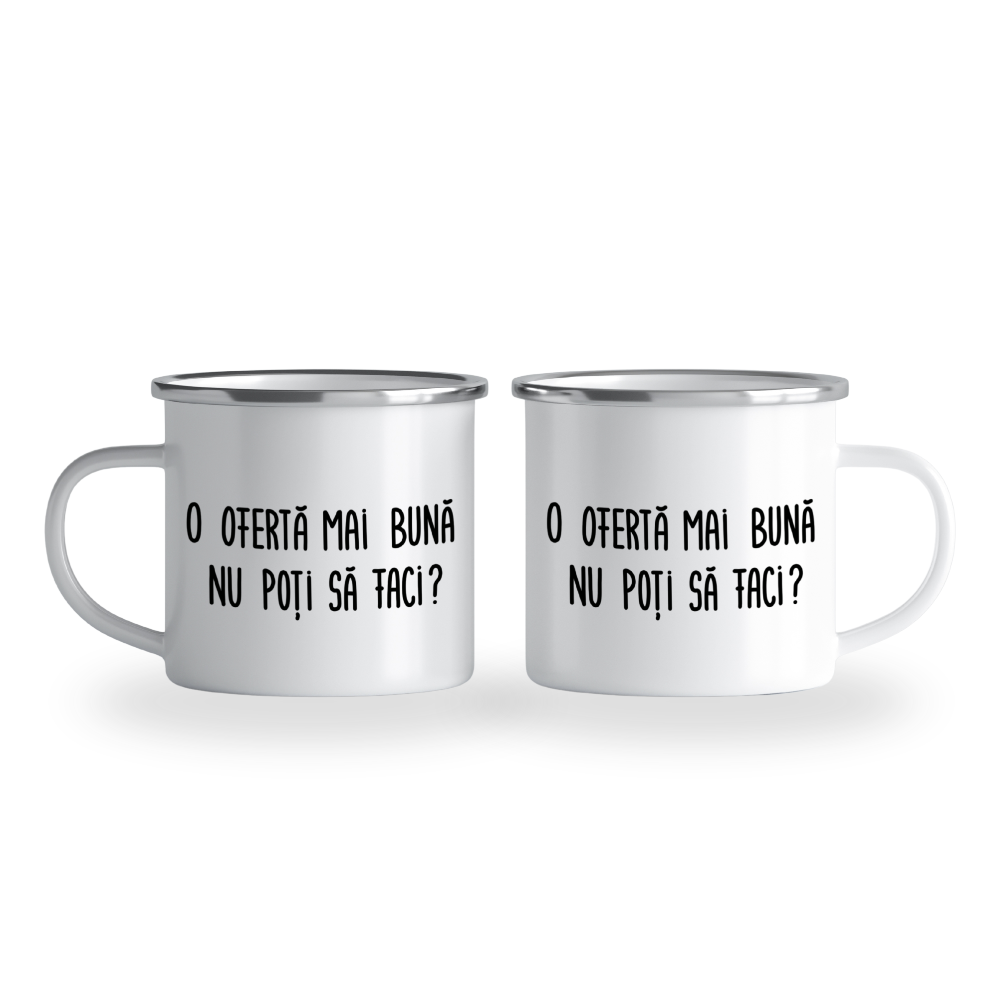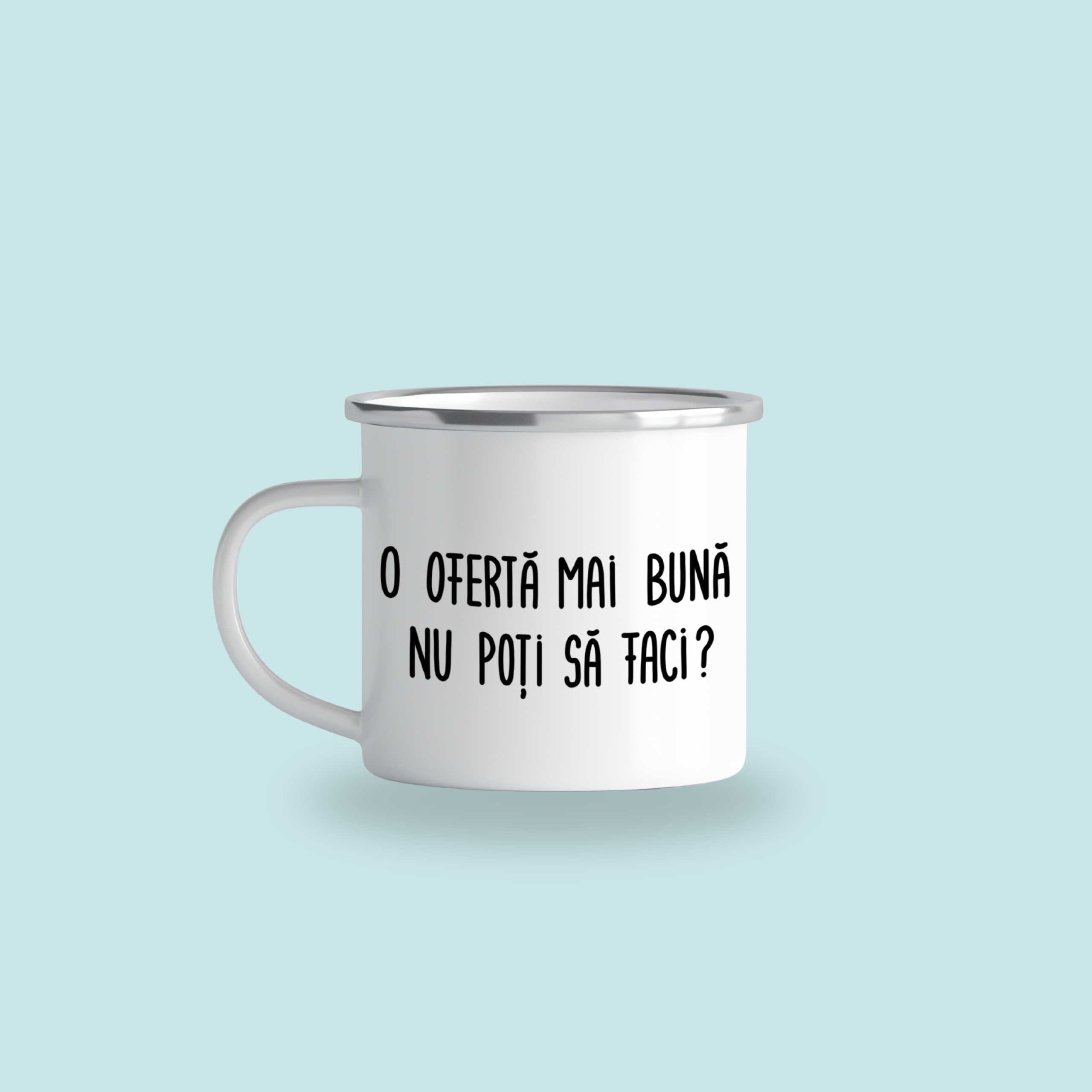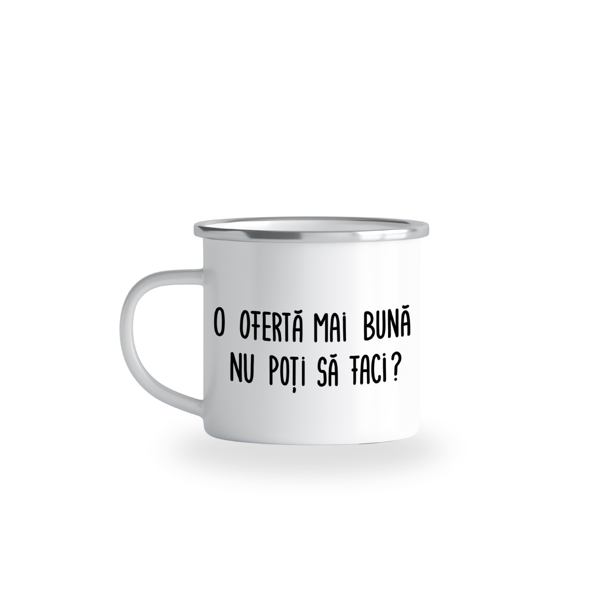 Cană emailată „O ofertă mai bună nu poți să faci?”, alb, ibrik, 360 ml