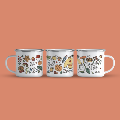 Cană emailată de calitate cu o capacitate de 360 ml. Grafica este unică si desenată manual.