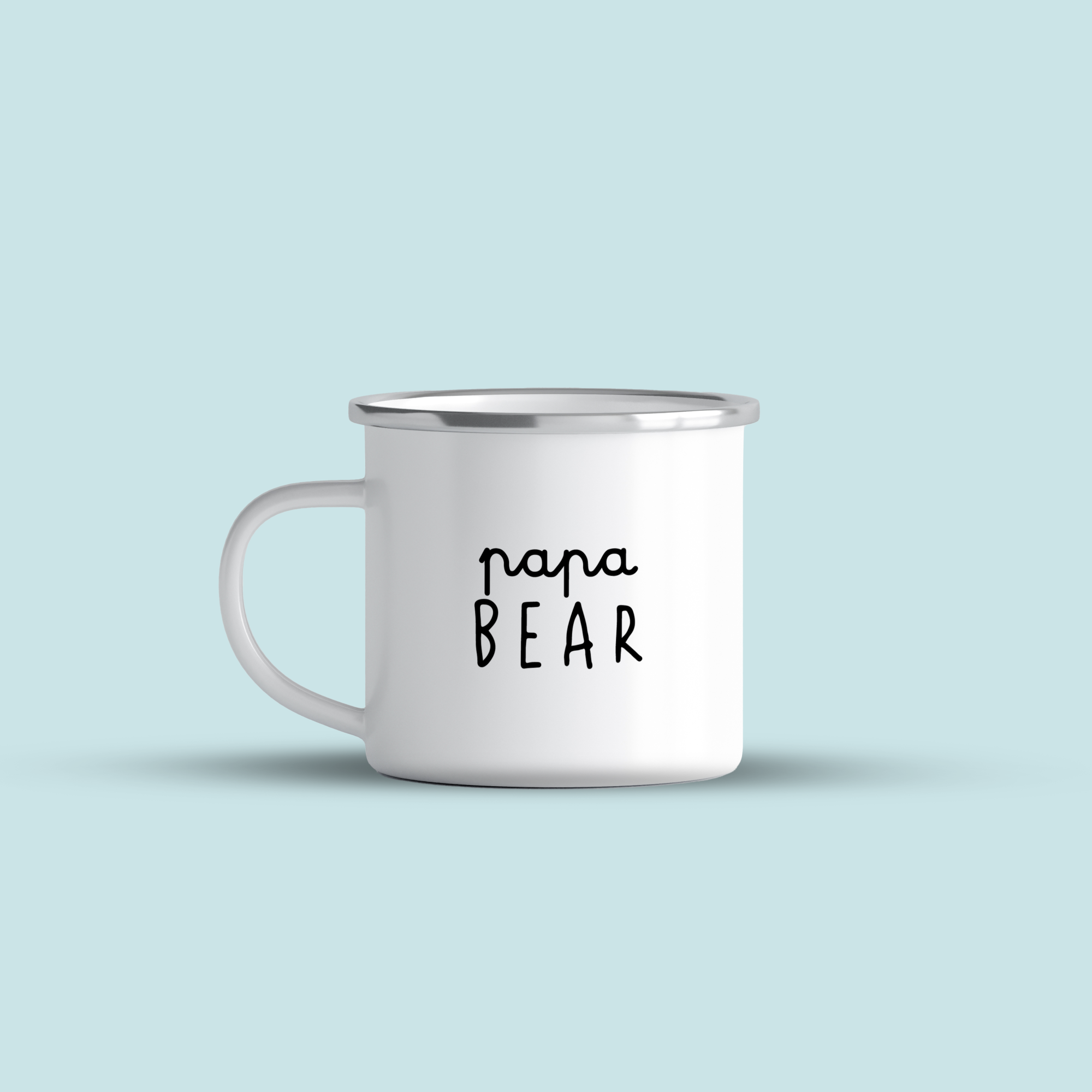 Cană emailată „Papa bear”, alb, ibrik, 360 ml