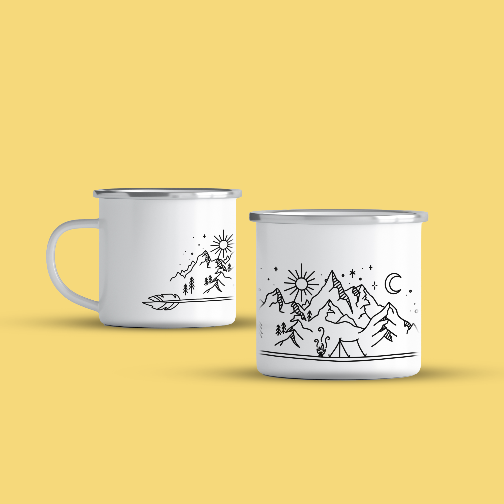 Cană emailată de calitate cu o capacitate de 360 ml. Grafica este unică si desenată manual.