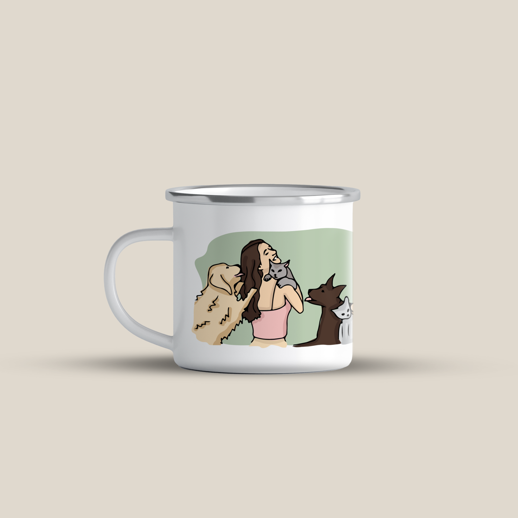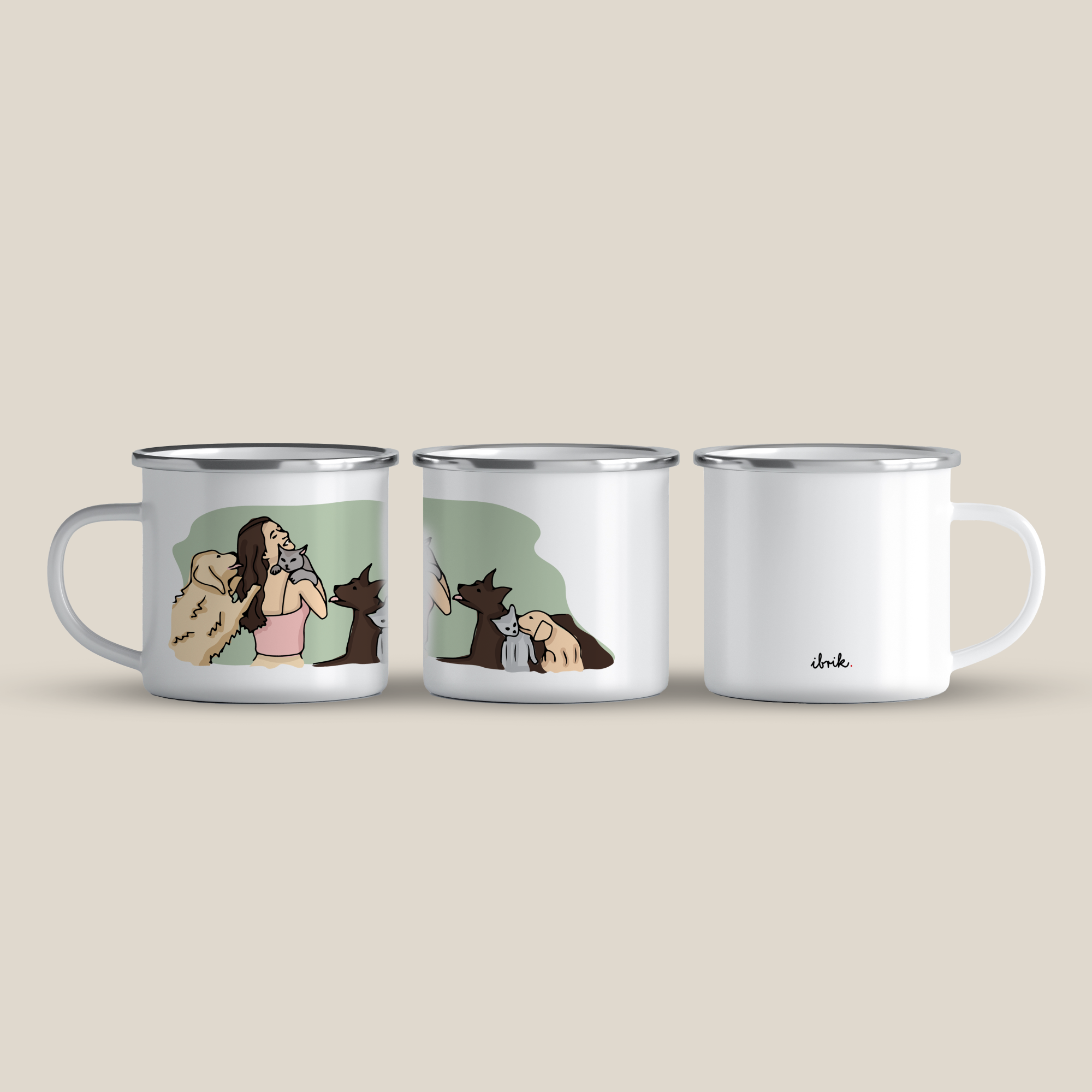 Cană emailată de calitate cu o capacitate de 360 ml. Grafica este unică si desenată manual.