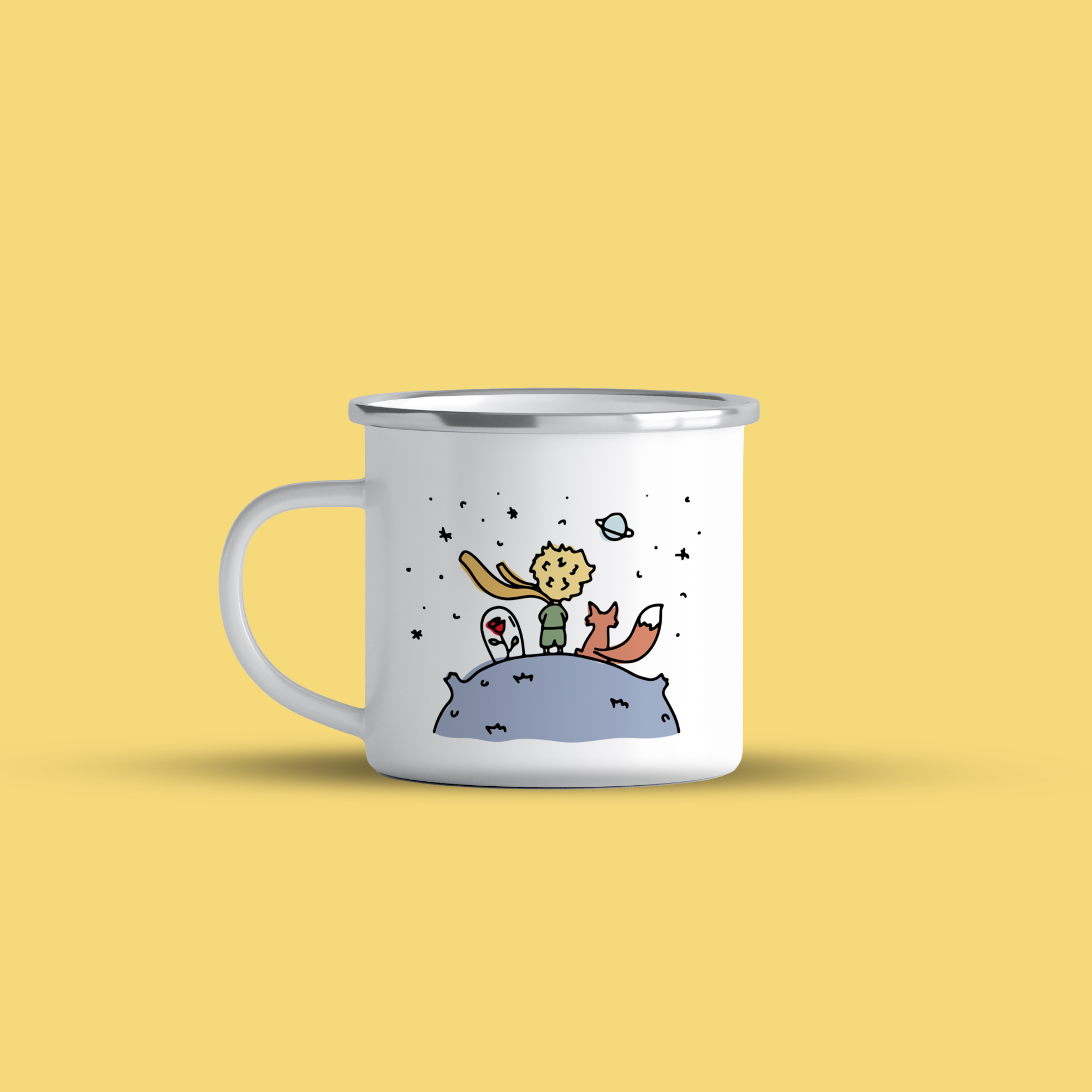 Cană emailată Planet B612, alb, ibrik, 360 ml