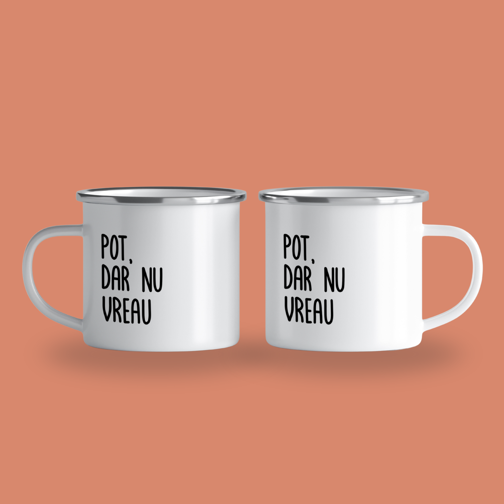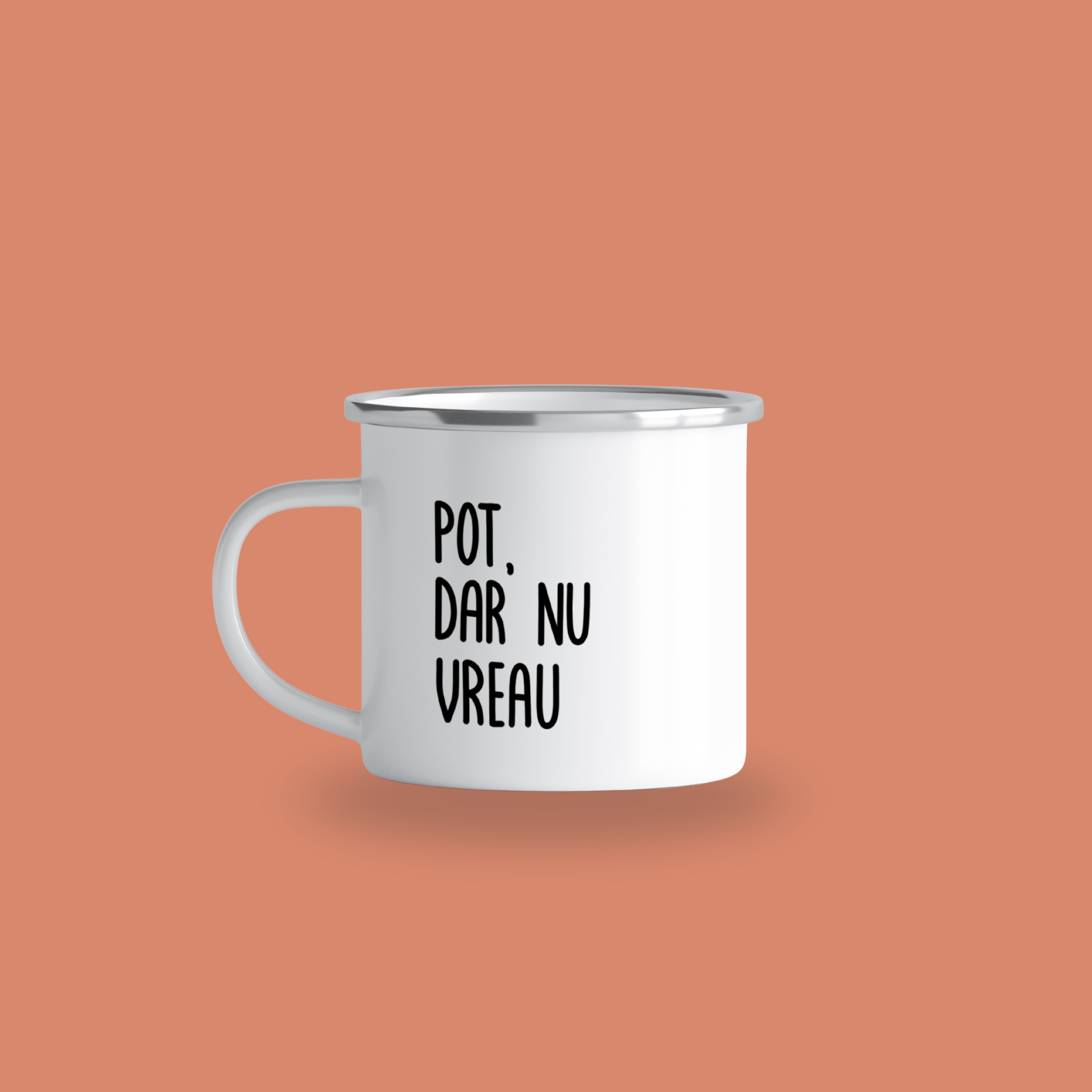 Cană emailată „Pot, dar nu vreau”, alb, ibrik, 360 ml