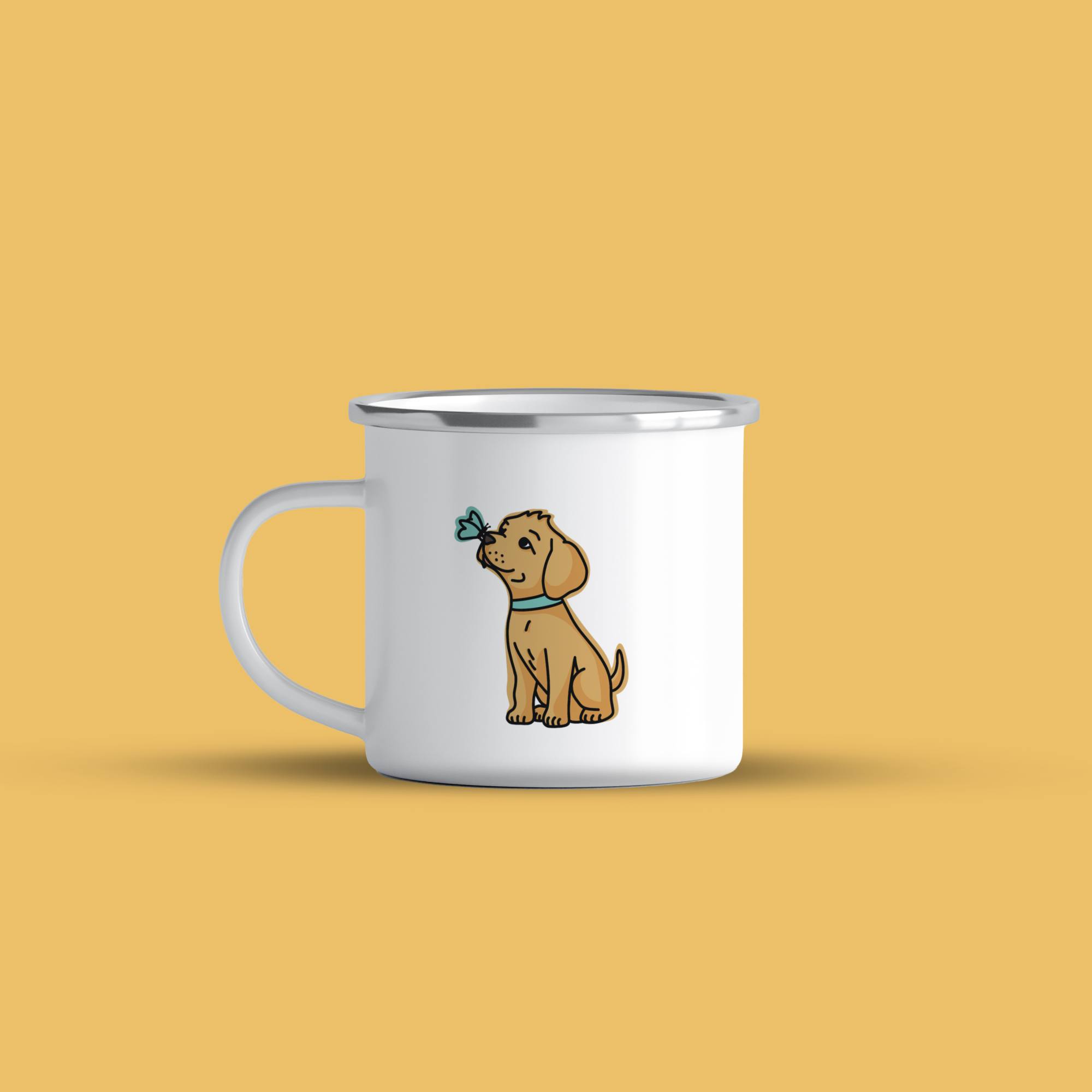 Cană emailată Puppy with butterfly, alb, ibrik, 360 ml