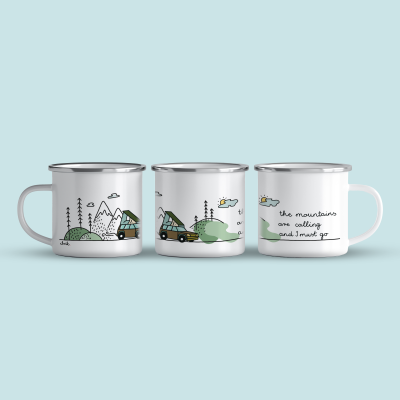 Cană emailată de calitate cu o capacitate de 360 ml. Grafica este unică si desenată manual.