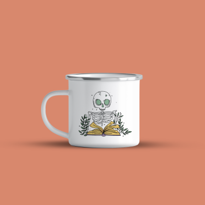 Cană emailată Reader skeleton, alb, ibrik, 360 ml
