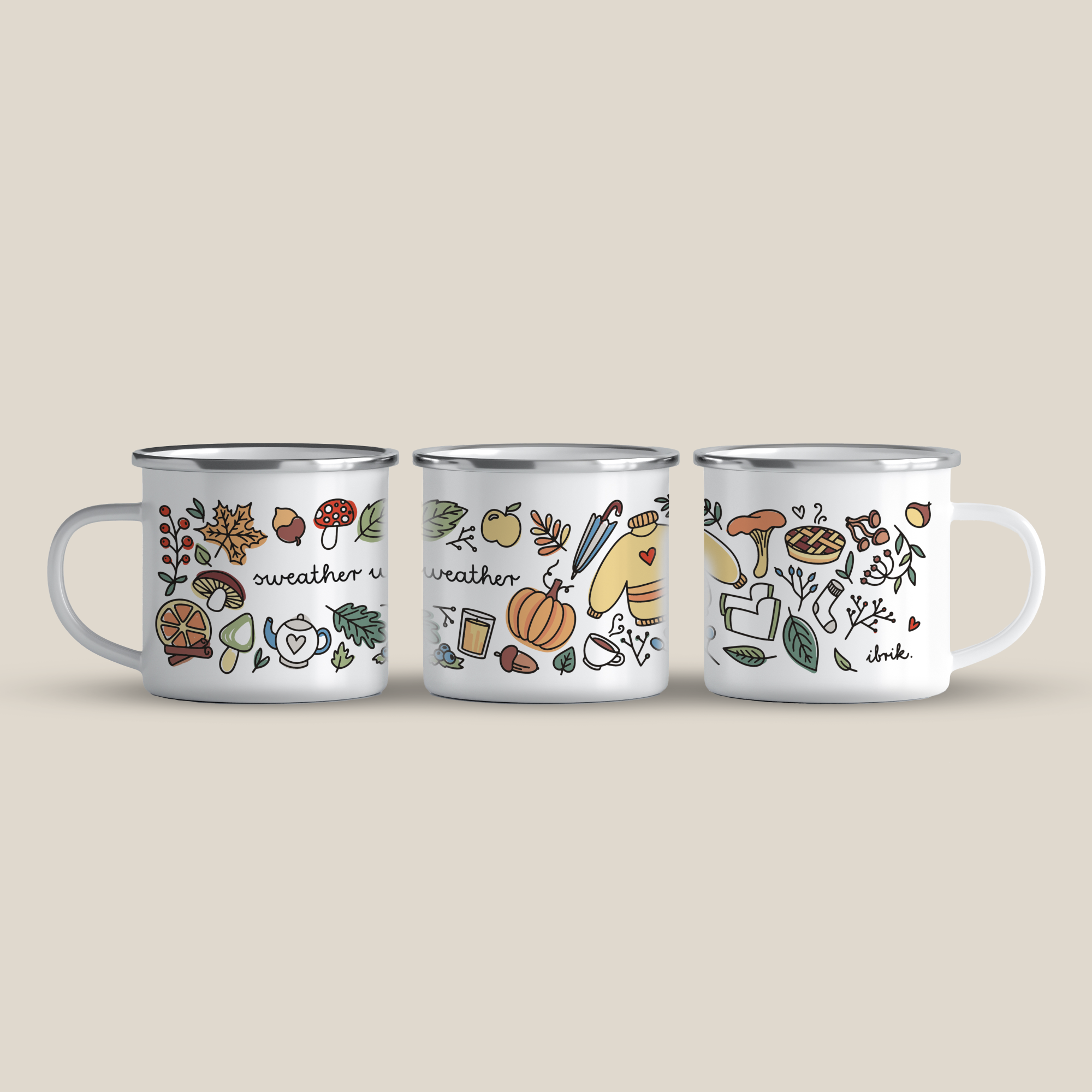 Cană emailată de calitate cu o capacitate de 360 ml. Grafica este unică si desenată manual.