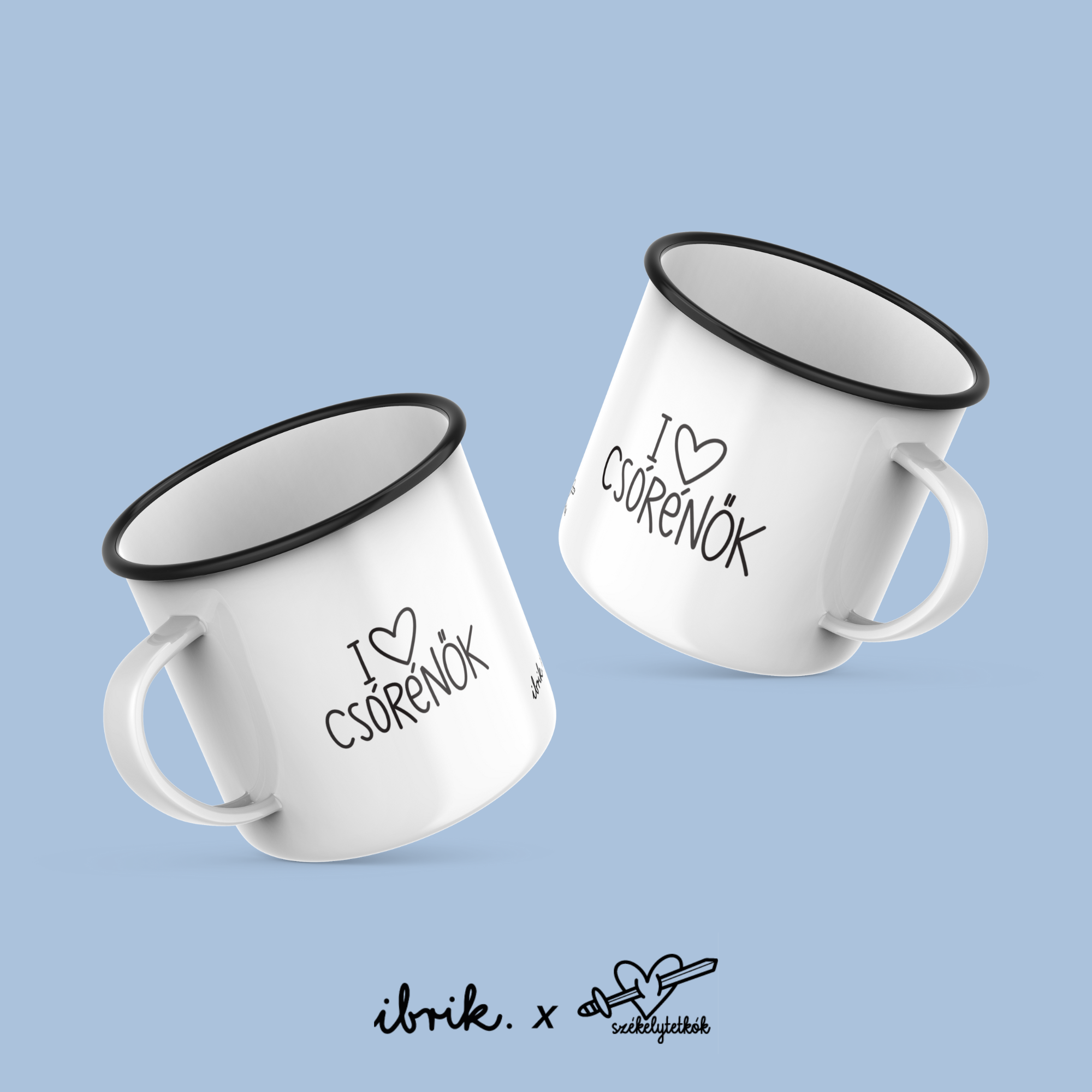 Cană emailata székelytetkók ”I love csórénők”, alb, ibrik, 360 ml