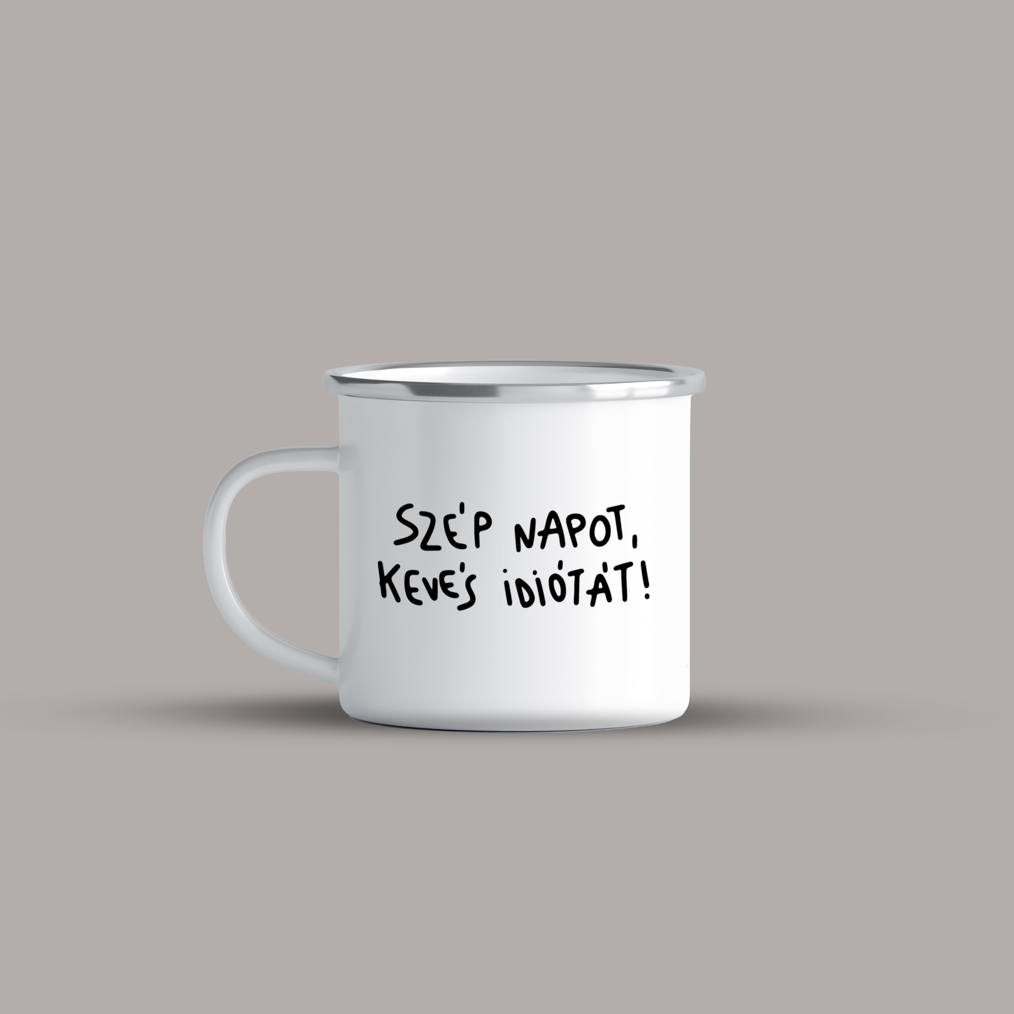 Cană emailată Szép napot kevés idiótát, alb, ibrik, 360 ml