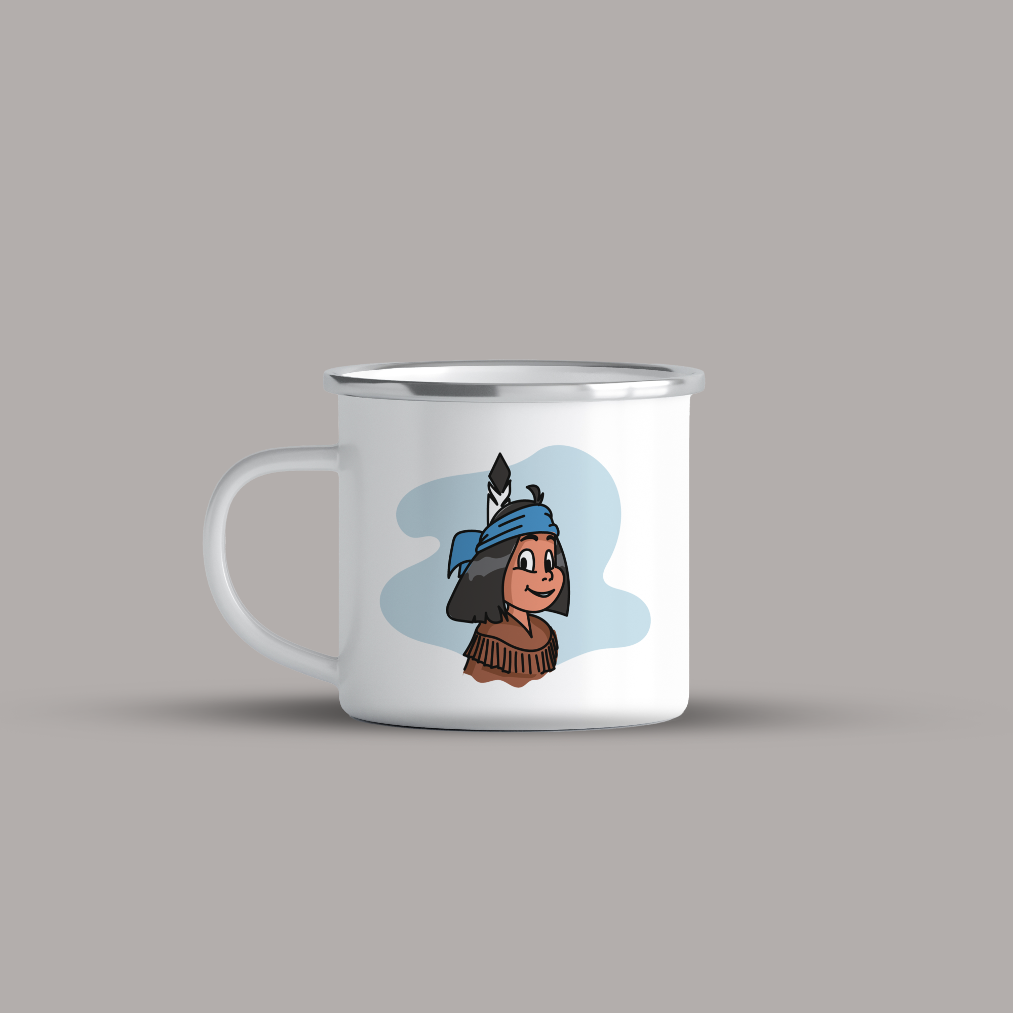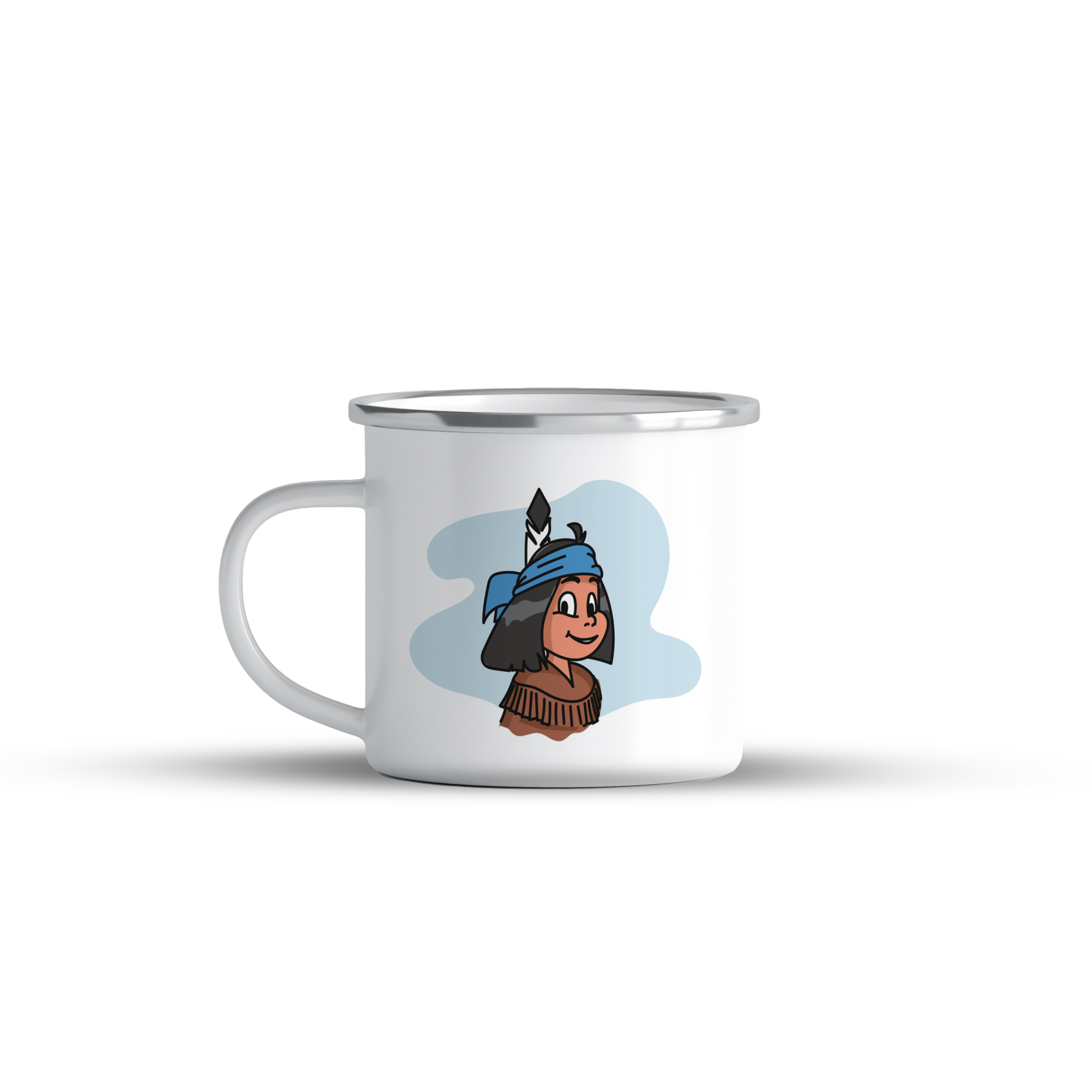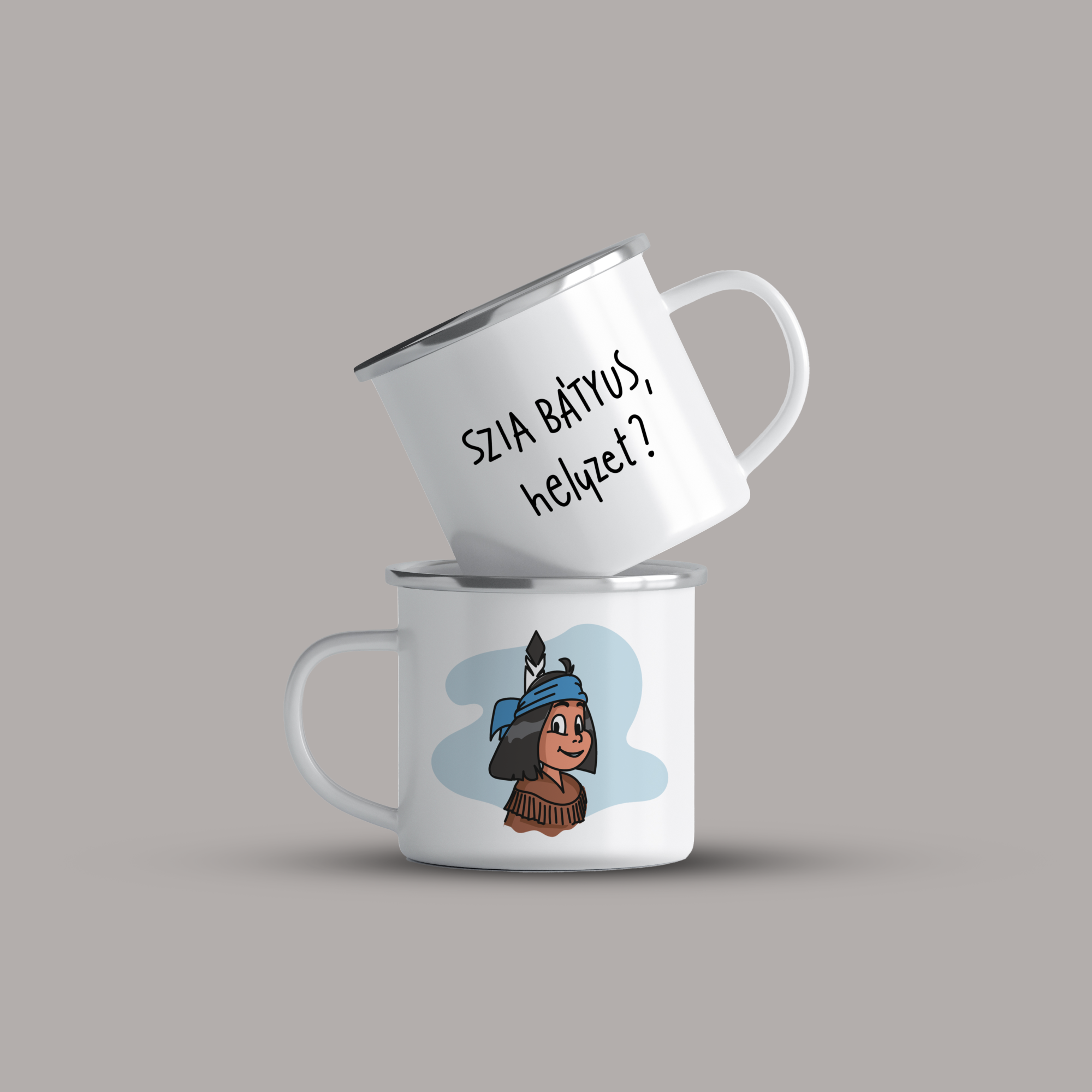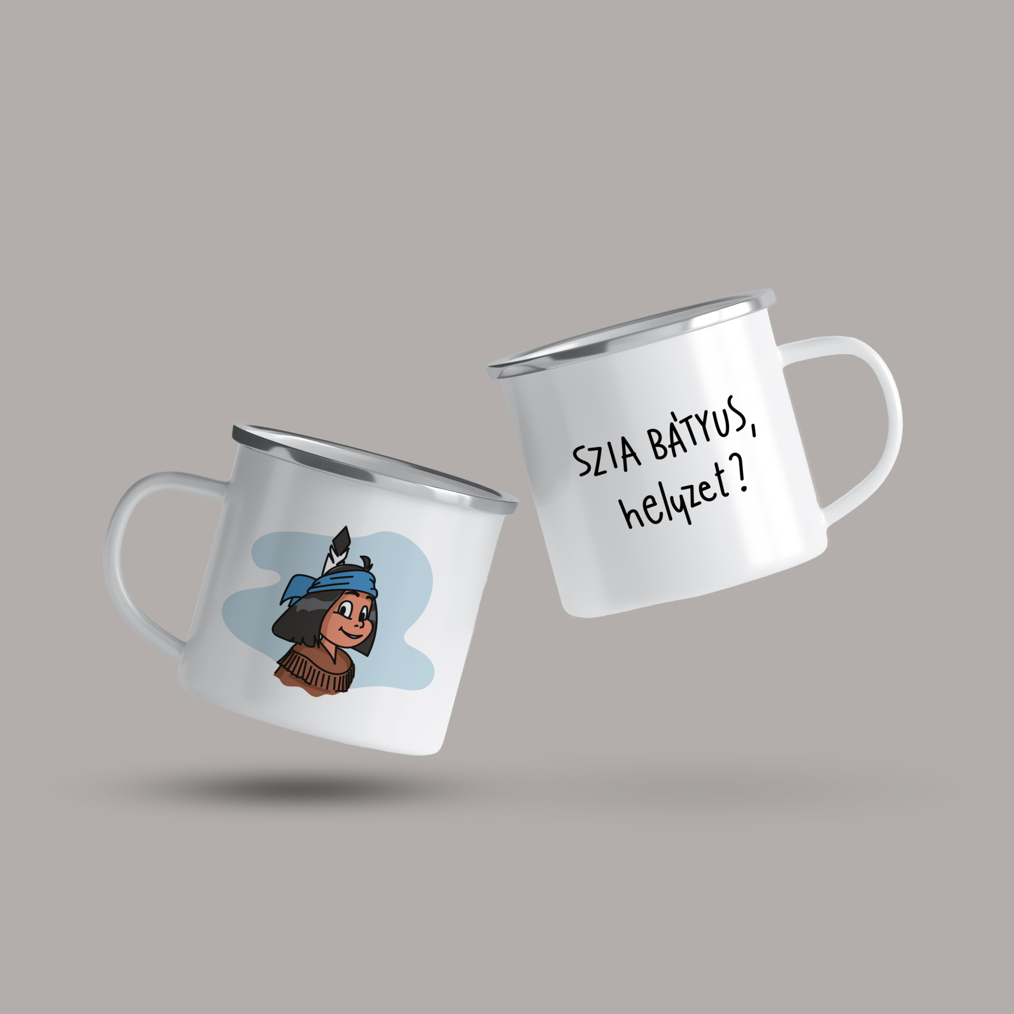 Cană emailată „Szia bátyus, helyzet?” – Yakari, alb, ibrik, 360 ml