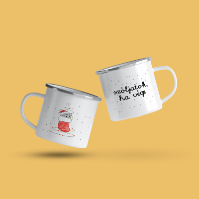Cană emailata „Szóljatok ha vége”, alb, ibrik, 360 ml
