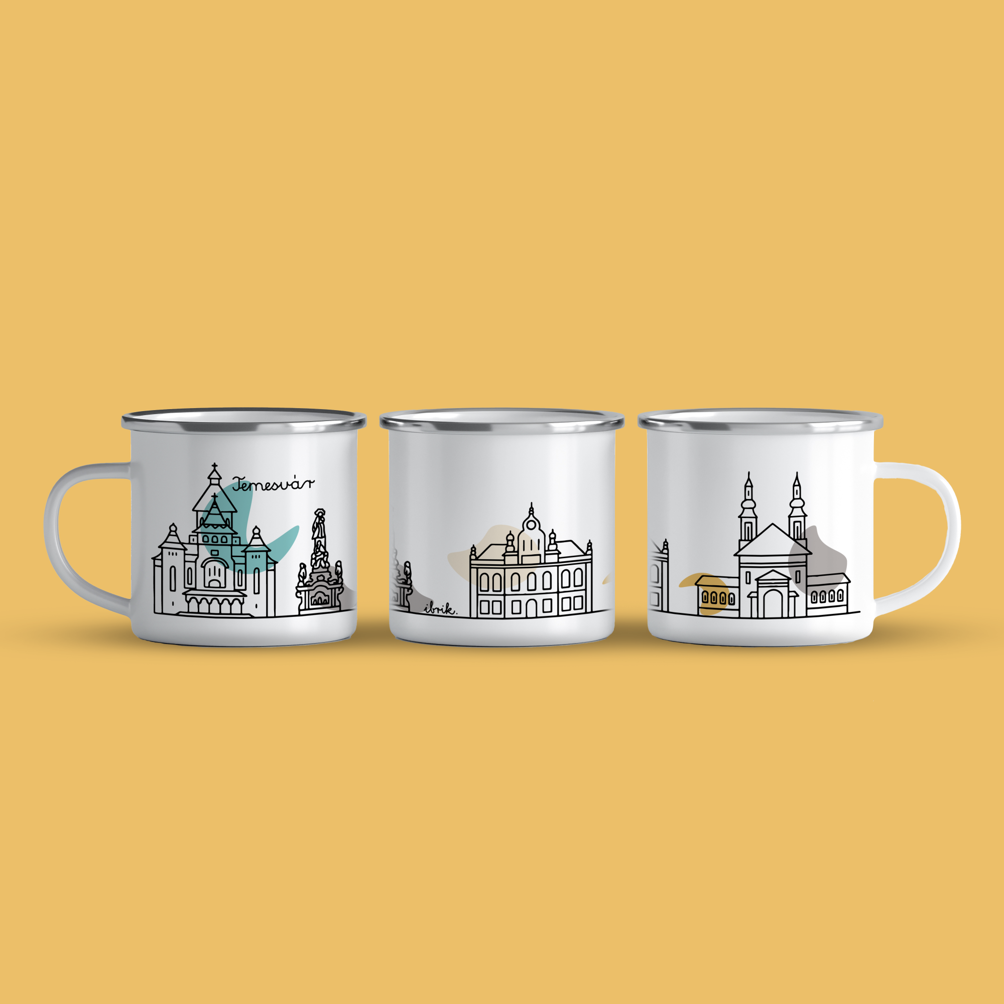 Cană emailată Temesvár – Timișoara blue, alb, ibrik, 360 ml