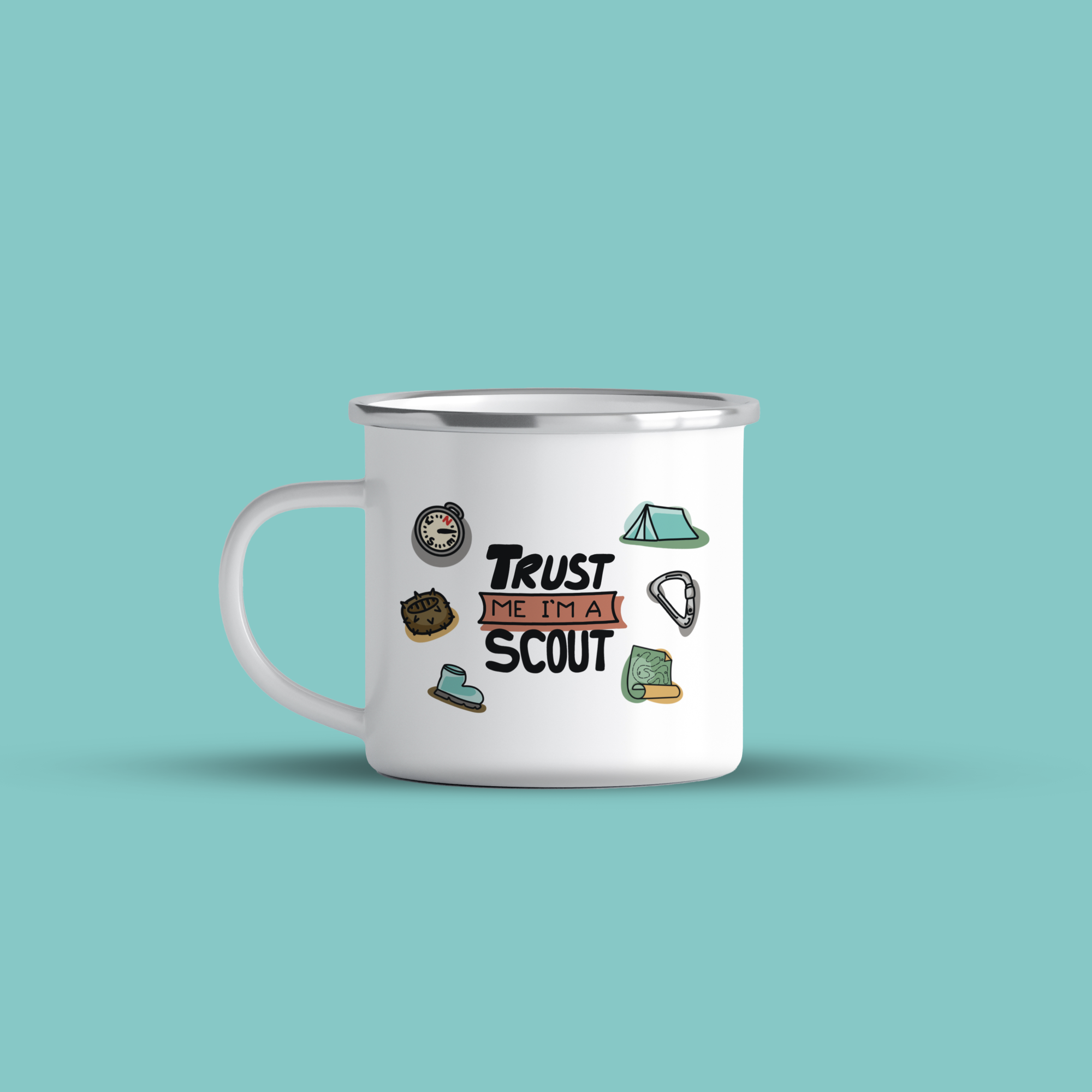 Cană emailată Trust me I’m a scout, alb, ibrik, 360 ml
