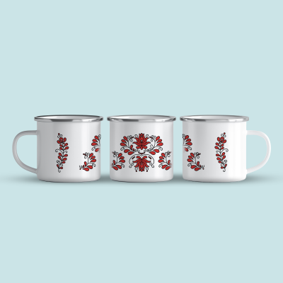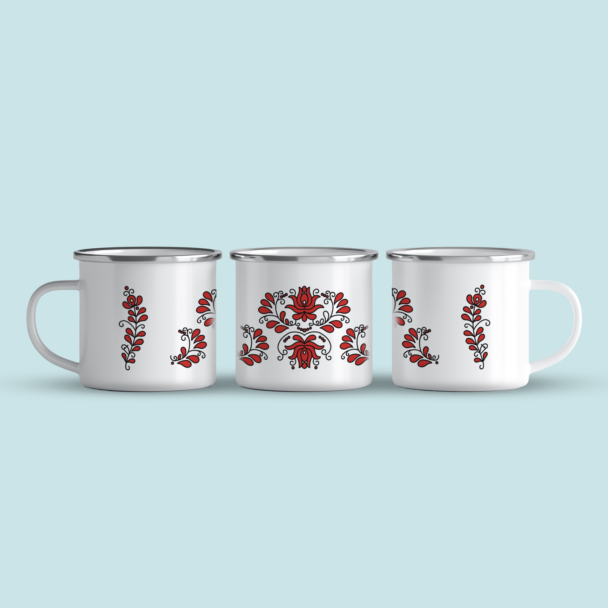 Cană emailată de calitate cu o capacitate de 360 ml. Grafica este unică si desenată manual.
