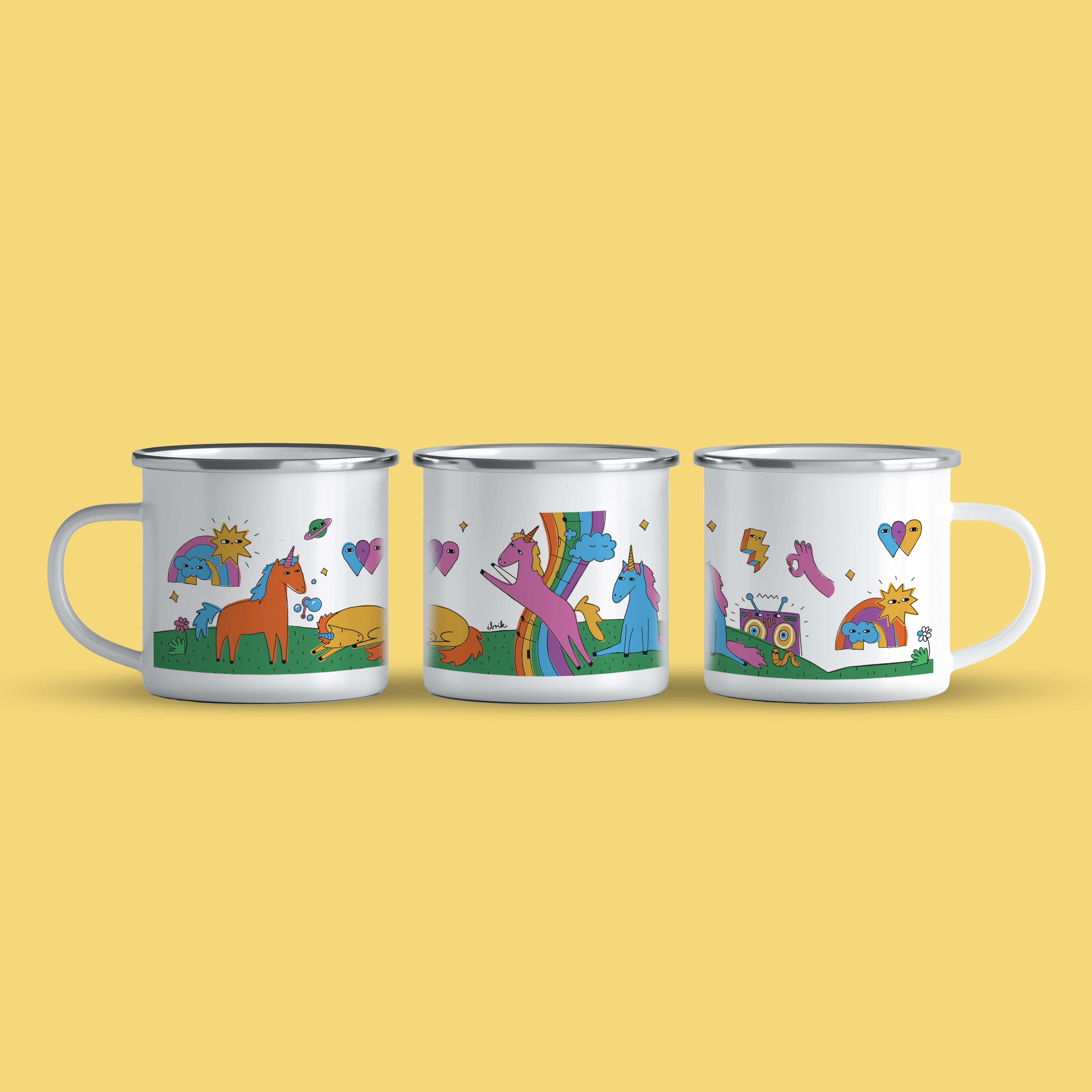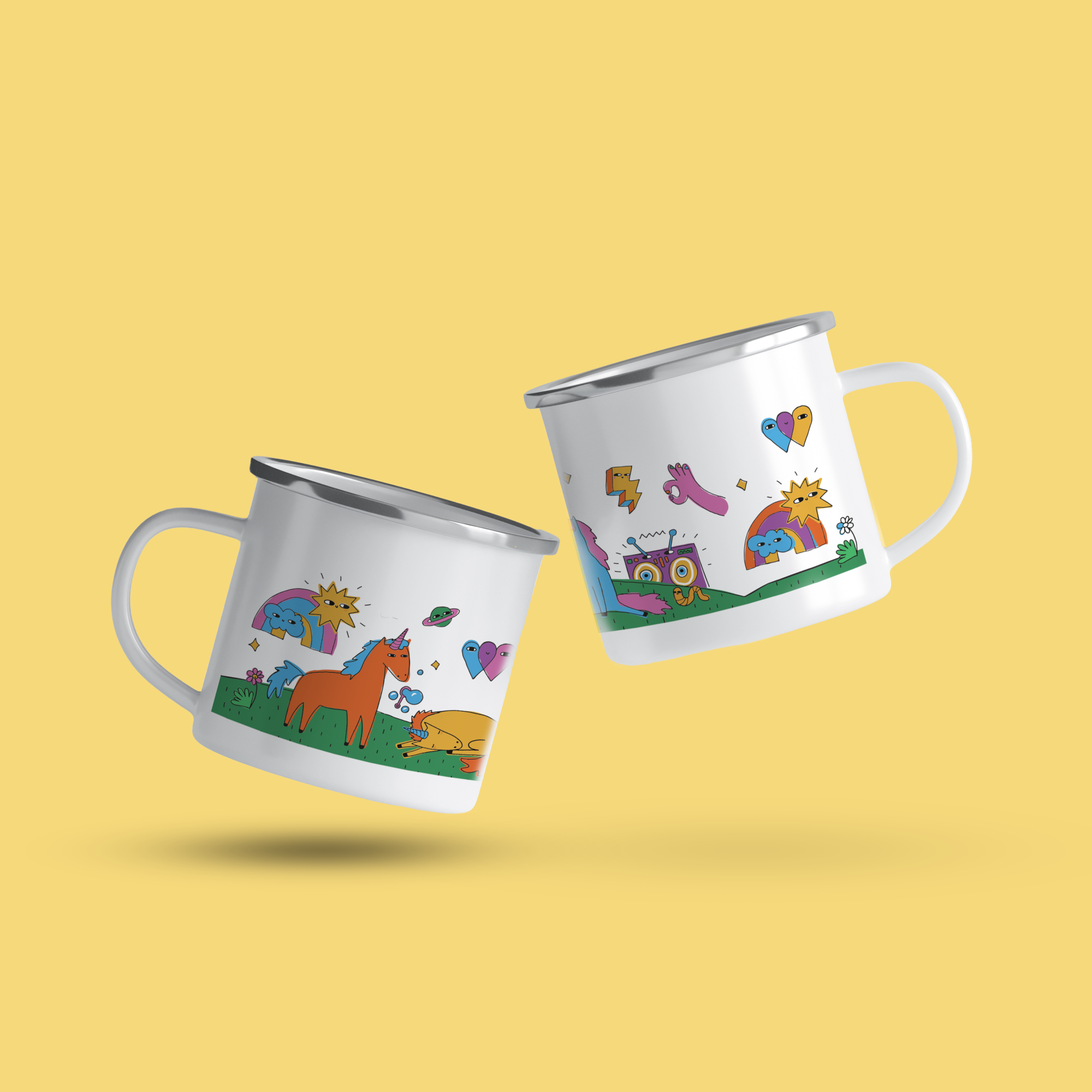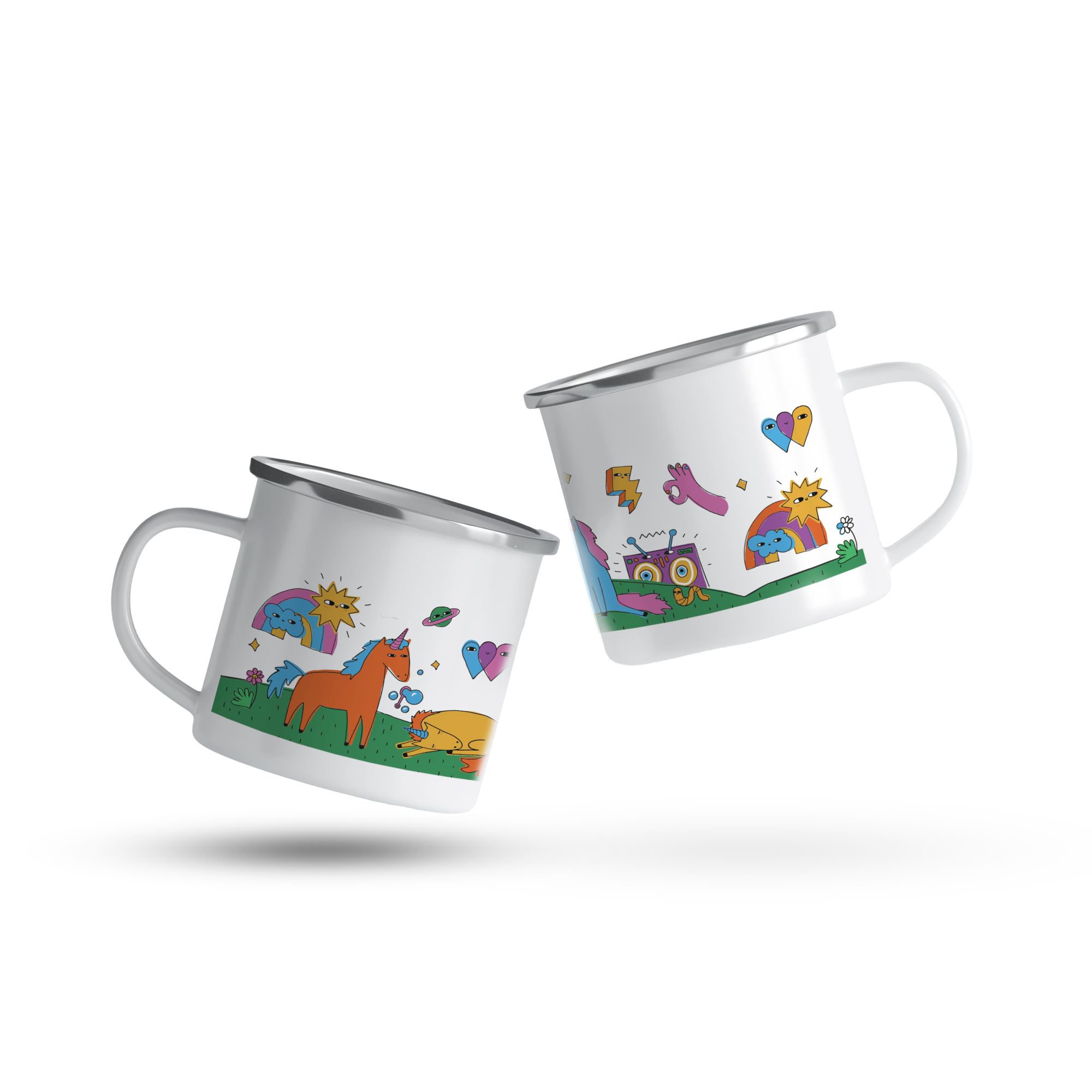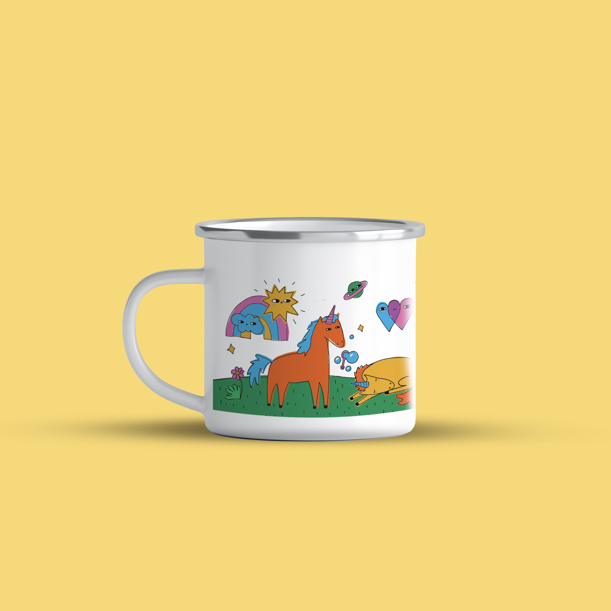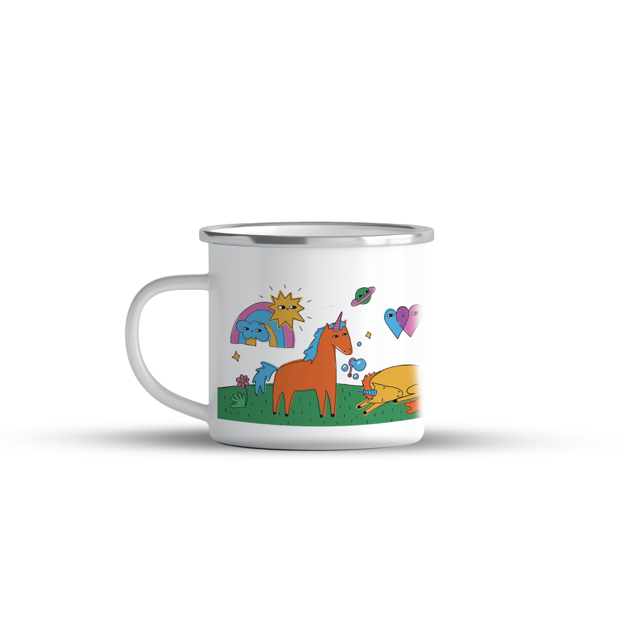 Cană emailată de calitate cu o capacitate de 360 ml. Grafica este unică si desenată manual.