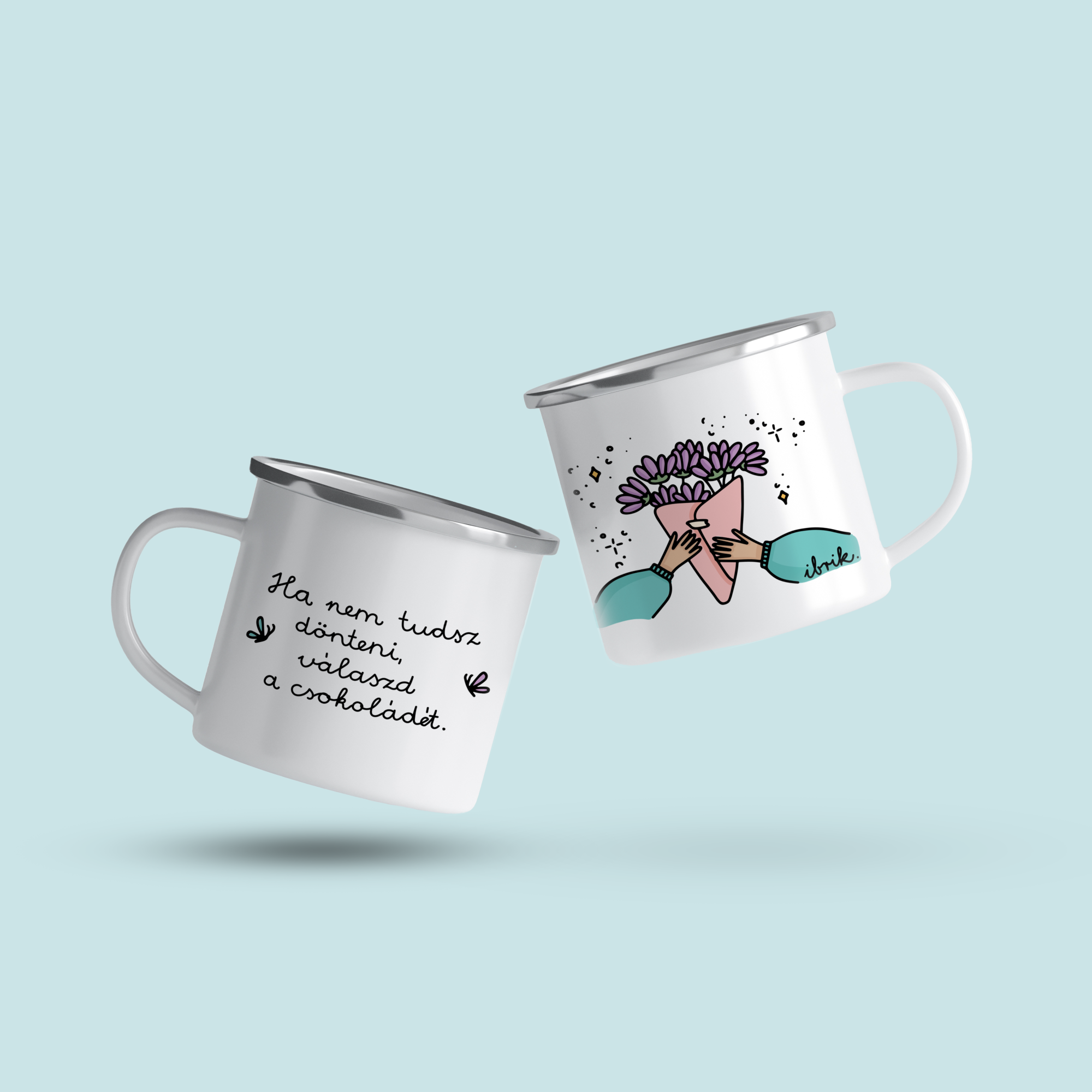 Cană emailată Válaszd a csokoládét, alb, ibrik, 360 ml