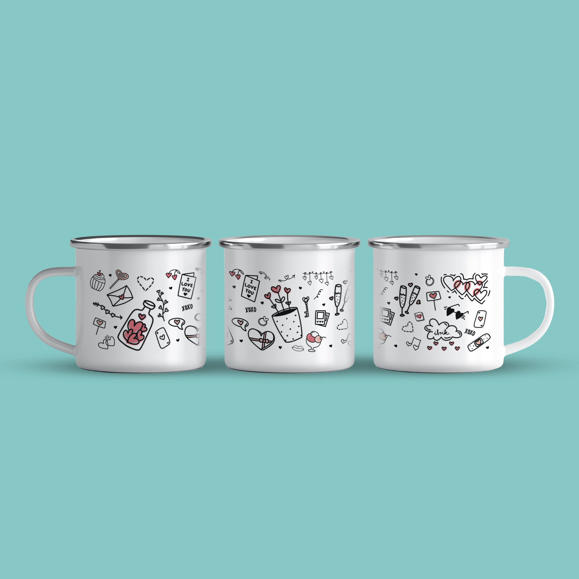 Cană emailată Valentine’s, alb, ibrik, 360 ml