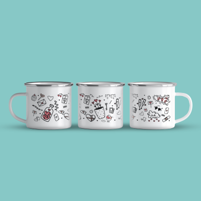 Cană emailată de calitate cu o capacitate de 360 ml. Grafica este unică si desenată manual.