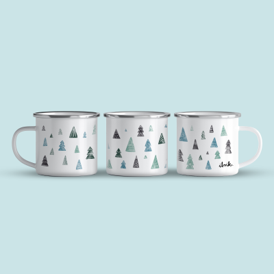 Cană emailata Watercolor trees – blue, alb, ibrik, 360 ml