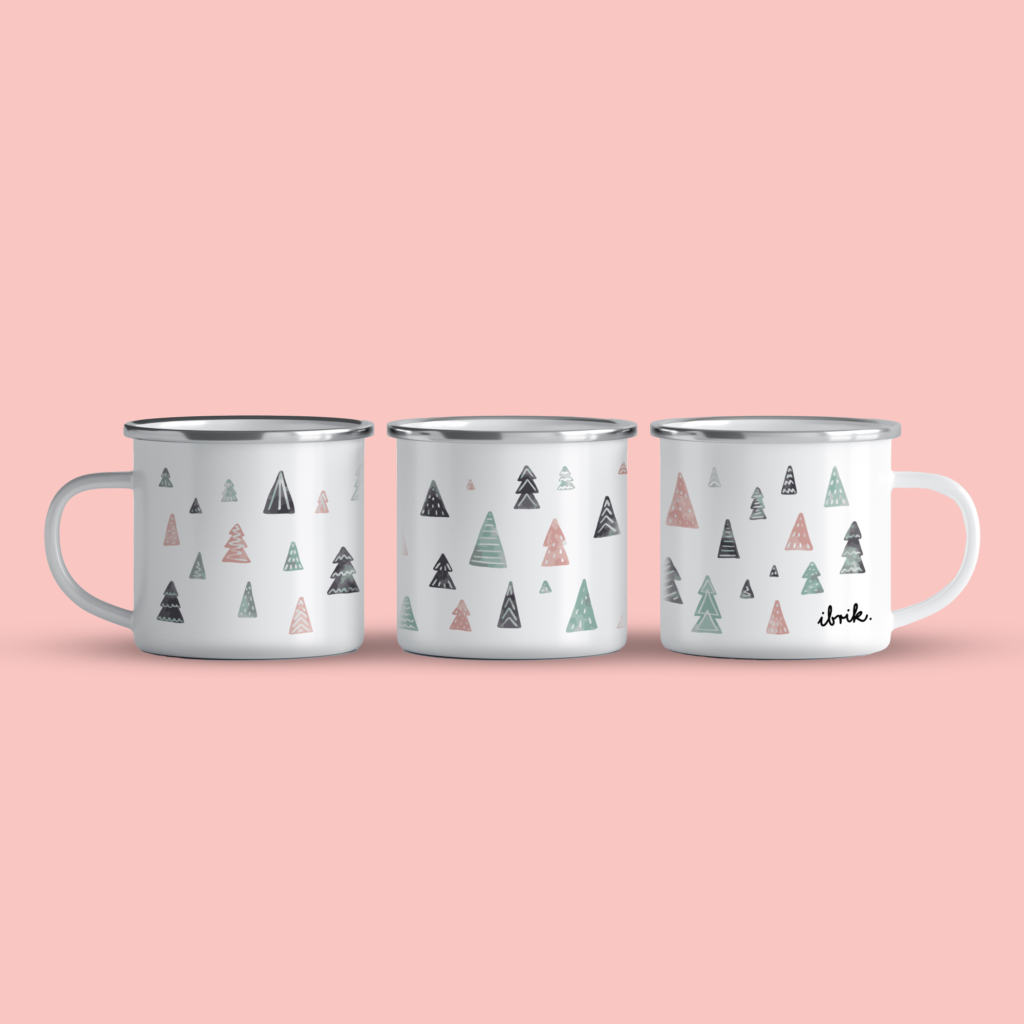 Cană emailata Watercolor trees - pink, alb, ibrik, 360 ml