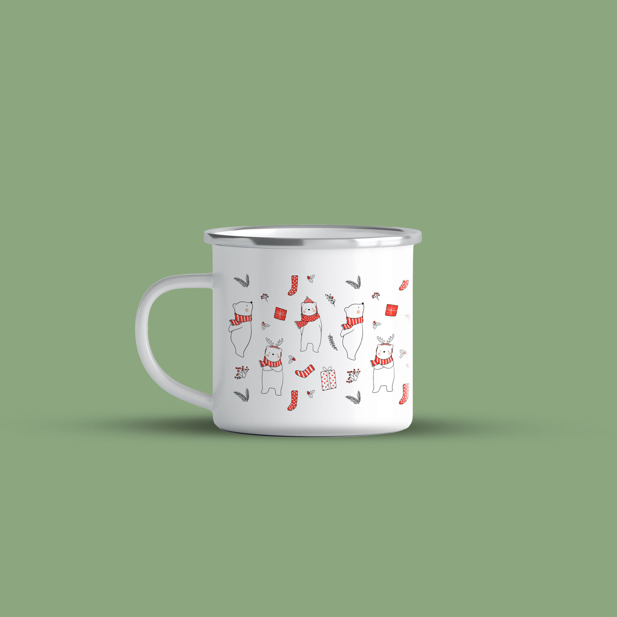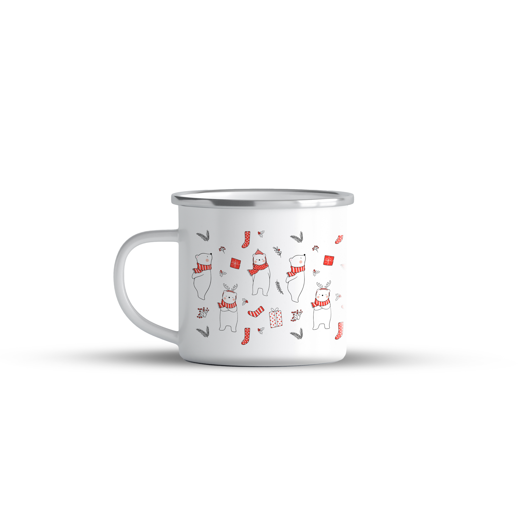 Cană emailata Winter Bear, alb, ibrik, 360 ml