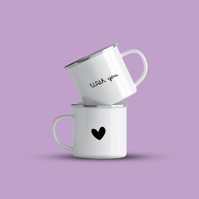 Cană emailată „With you”, alb, ibrik, 360 ml