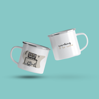 Cană emailată Working 9 to wine, alb, ibrik, 360 ml