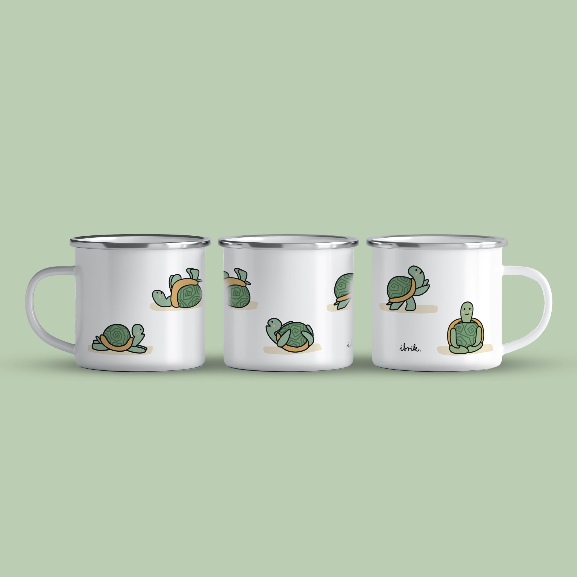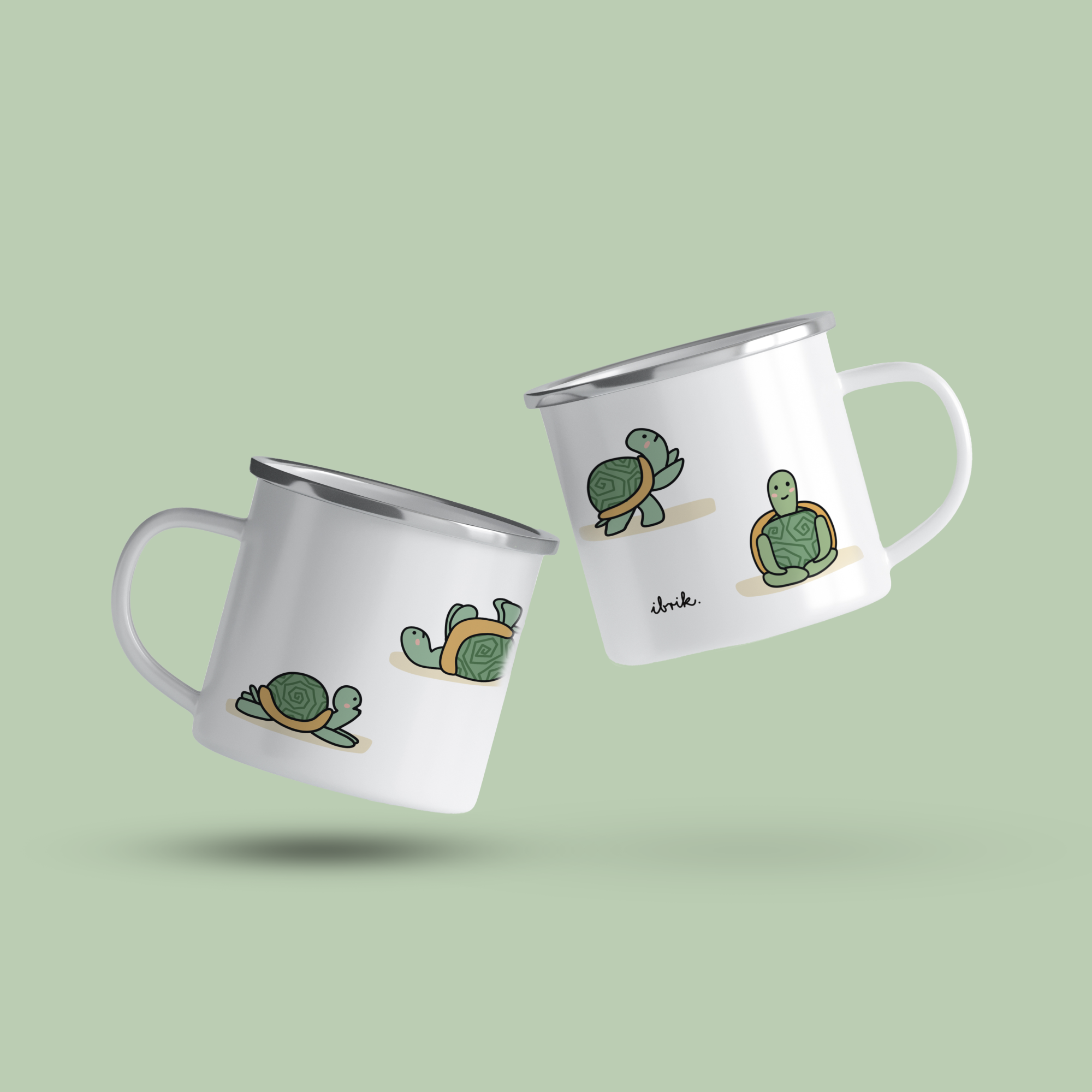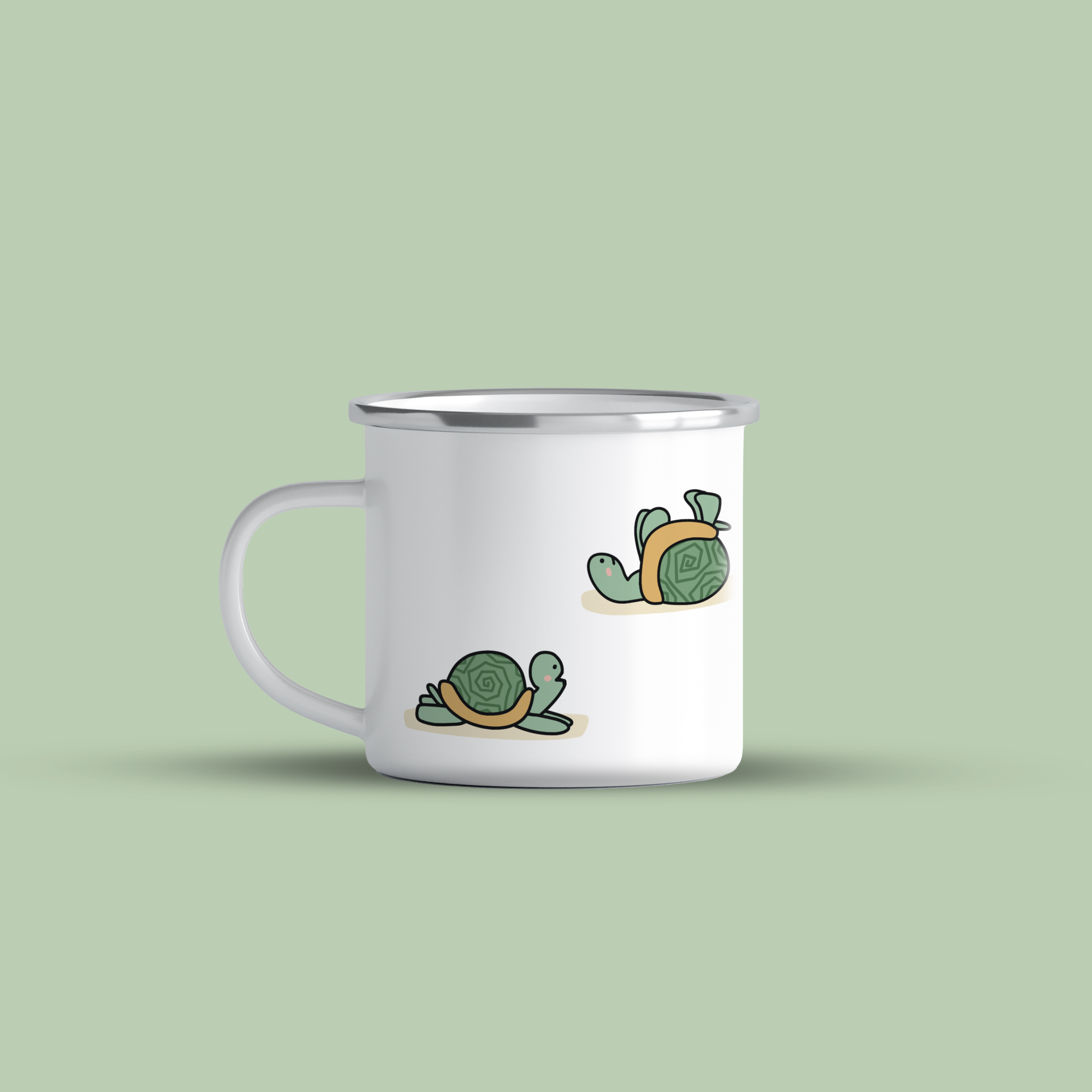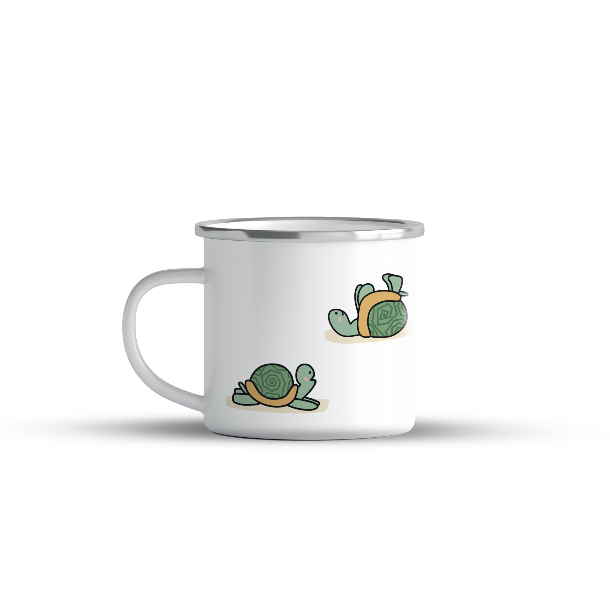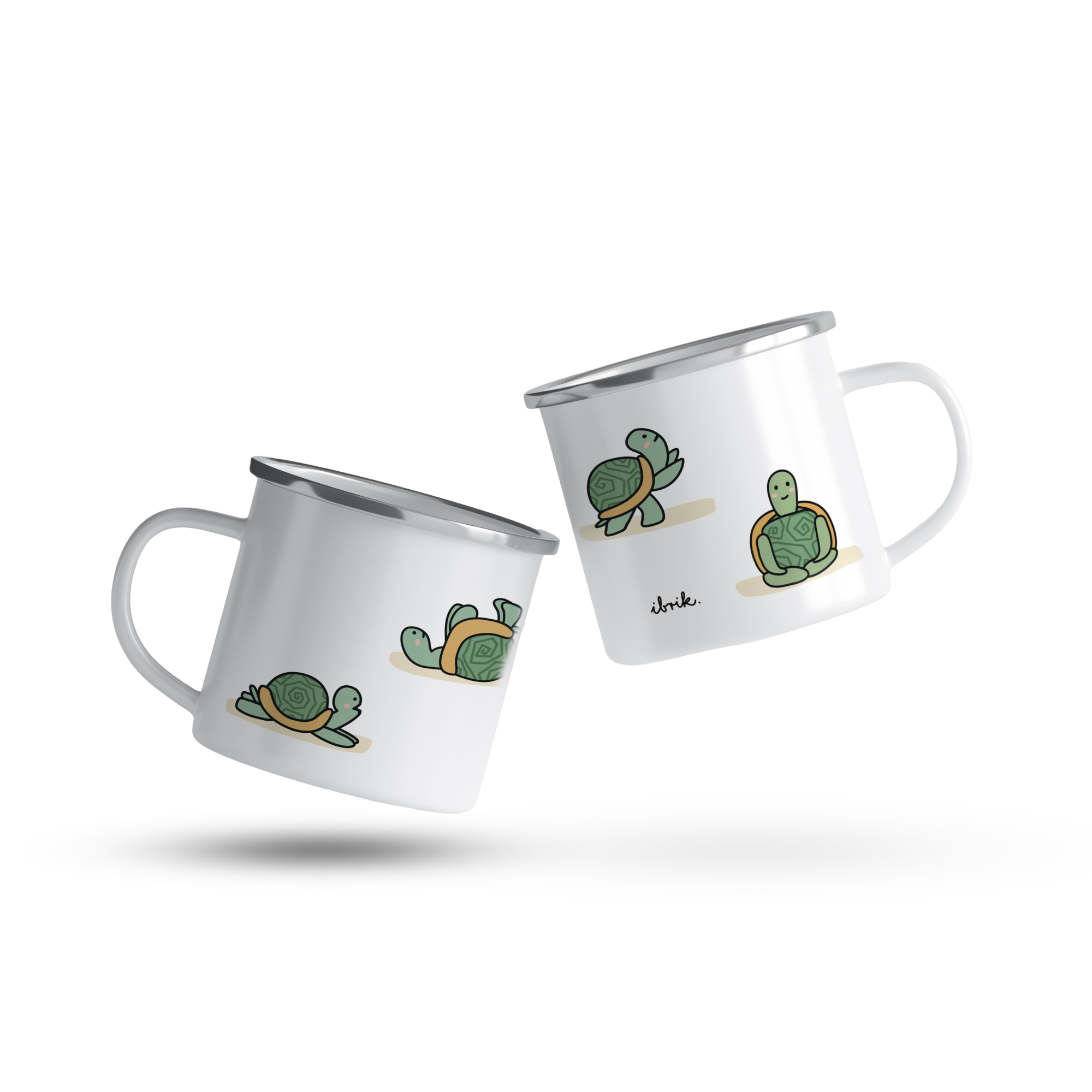 Cană emailată Yoga turtles, alb, ibrik, 360 ml
