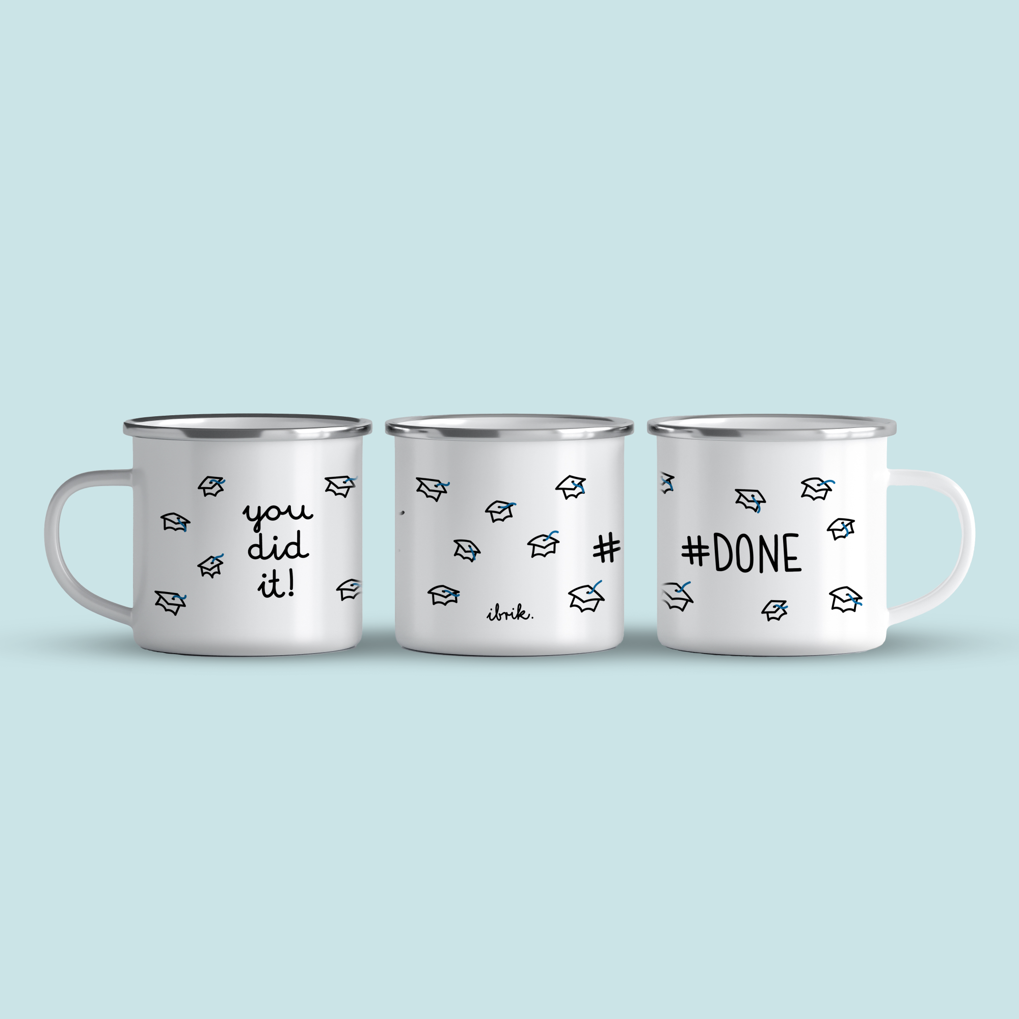 Cană emailată „you did it!”, alb, ibrik, 360 ml