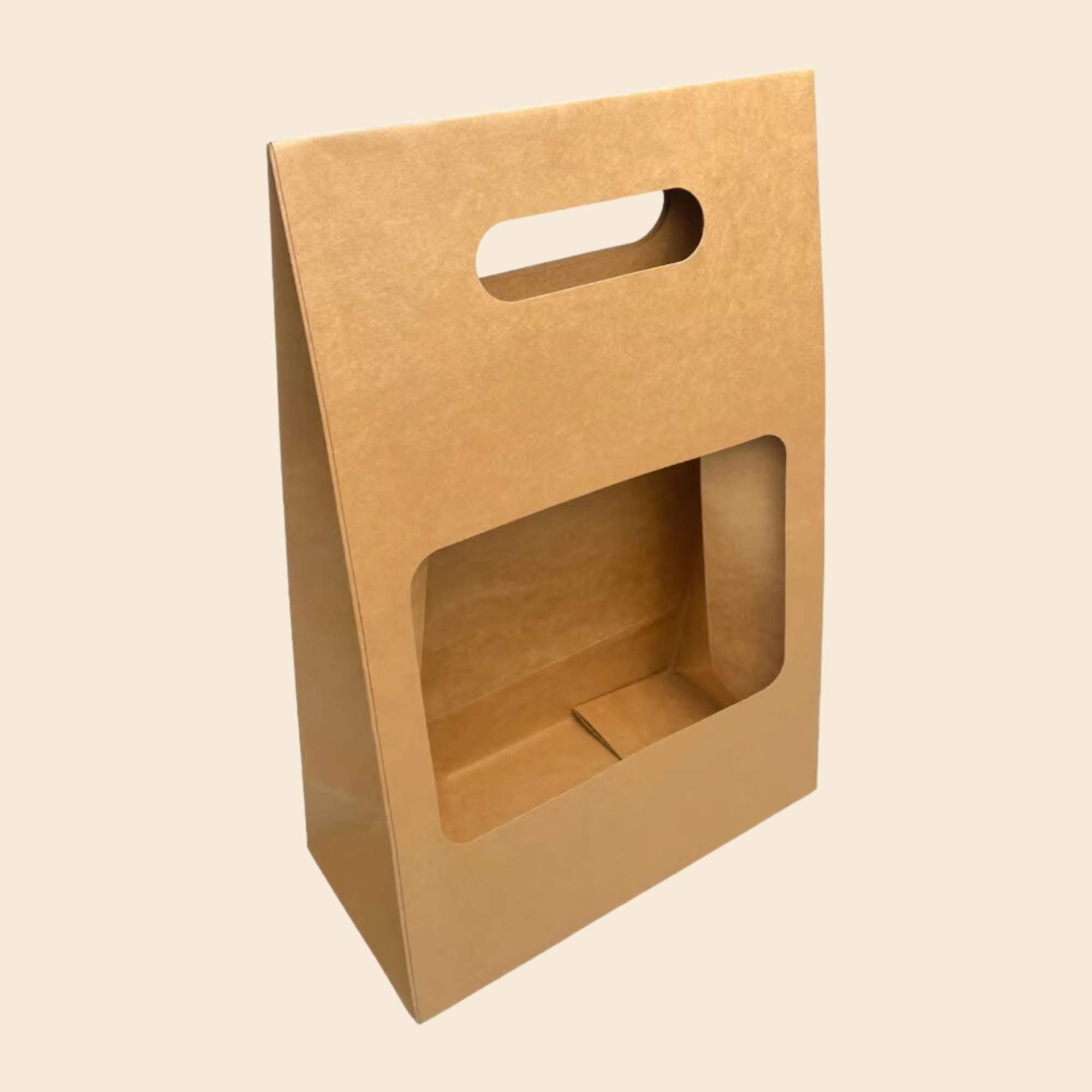 Cutie cadou cu fereastră și mâner – natur, dimensiune 37,5x25x12cm, soluția perfectă pentru ambalarea și prezentarea elegantă a produselor ibrik.