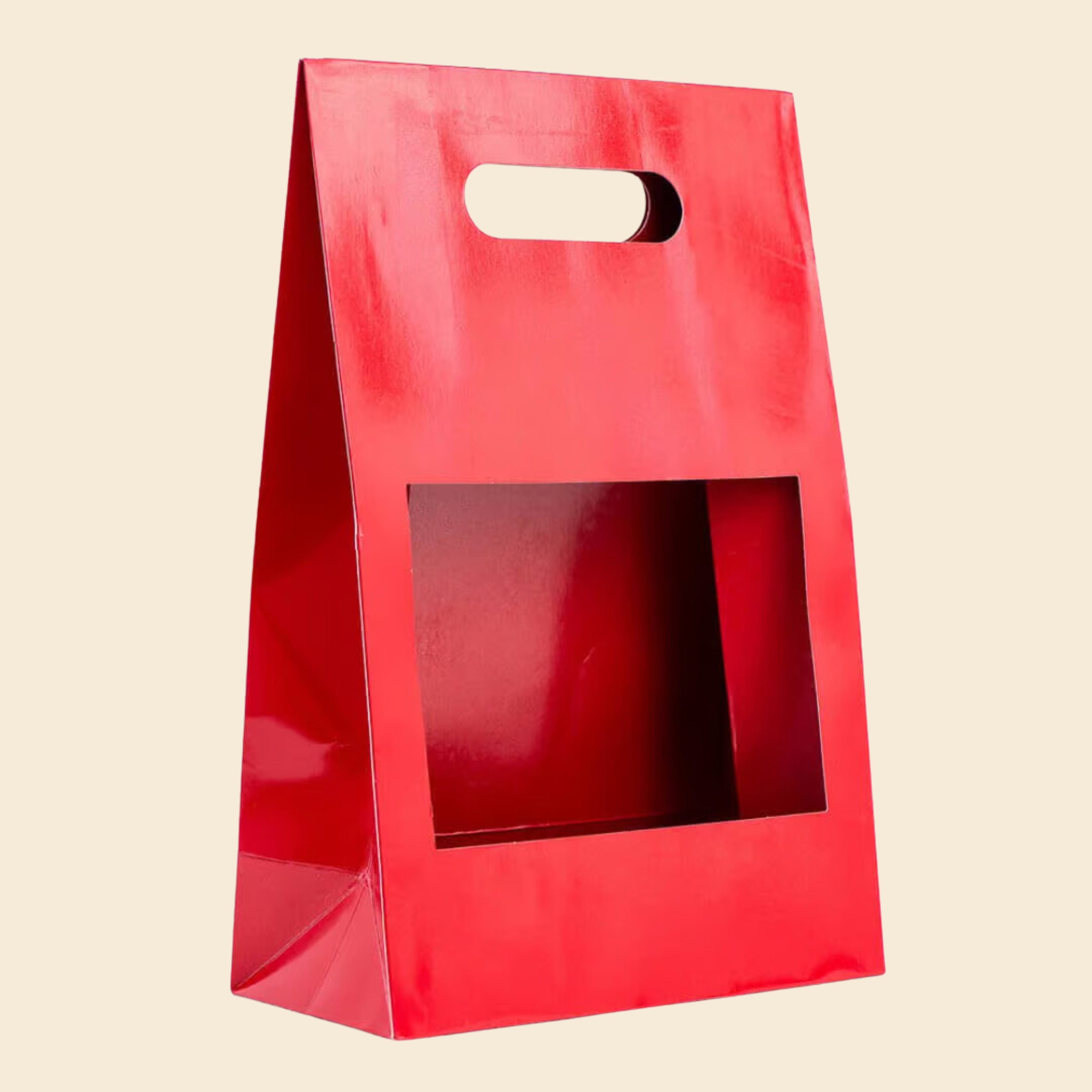 Cutie cadou cu fereastră și mâner – roșu, dimensiune 37,5x25x12cm, soluția perfectă pentru ambalarea și prezentarea elegantă a produselor ibrik.