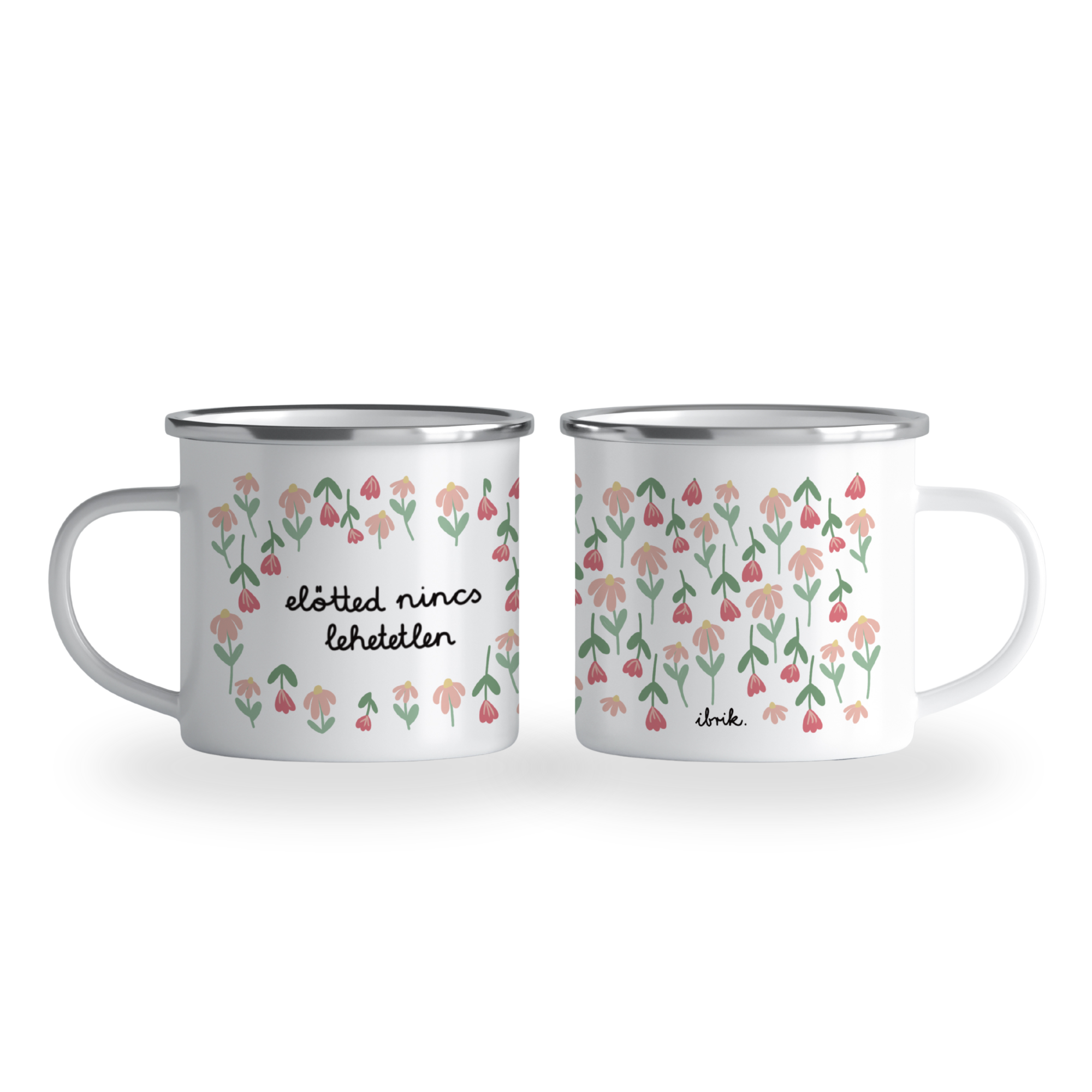 "Előtted nincs lehetetlen"- tulips, cană emailată, alb, ibrik, 360 ml